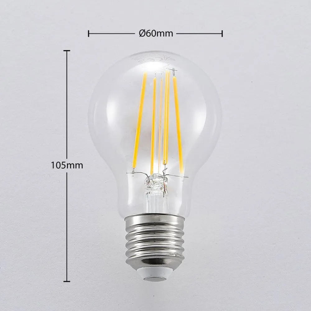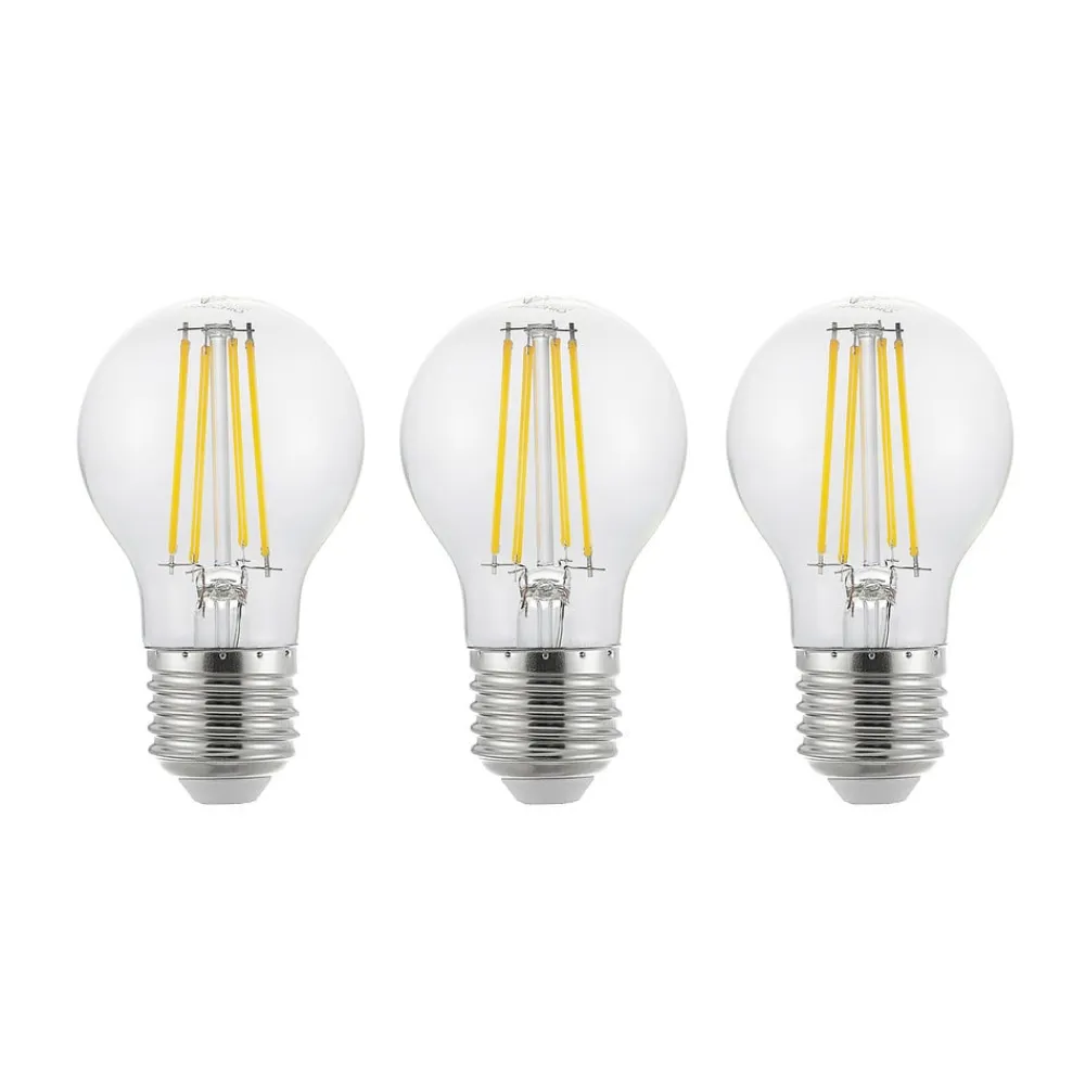 LED-lampe E27 glødelampe klar, varm hvid, dæmpbar i sæt med 3A Dekorativ erstatning for 60W glødelamper i mange eksisterende armaturer er denne klare LED-lampe med glødelampeoptik. Uden en ekstra lysdæmper kan lampens lysstyrke indstilles i tre trin (100%, 55%, 20%) via vægkontakten.- levering i et praktisk sæt med 3 stk