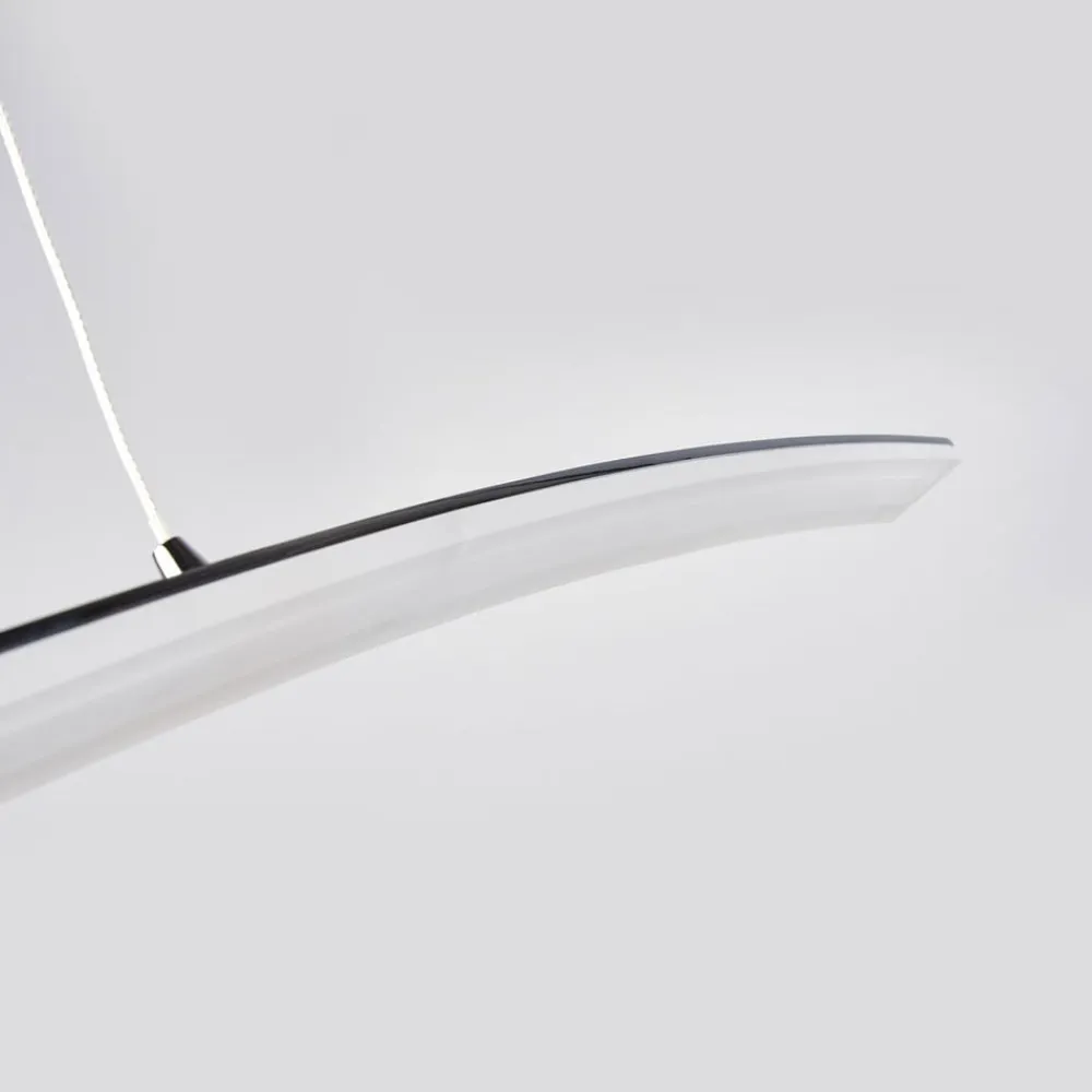 En absolut moderne lyskilde: Lorian LED-pendellampen imponerer med sit elegante design Den buede og satiniserede diffuser på denne pendellampe sikrer en jævn fordeling af det varmhvide LED-lys. Rammen er udført i skinnende krom og suppleres harmonisk af den buede diffusors satinerede overflade. Som LED-hængelampe ser Lorian perfekt ud over enhver type bord eller skranke og giver stærkt lys med lavt energiforbrug, hvilket gør den skånsom for pengepungen.