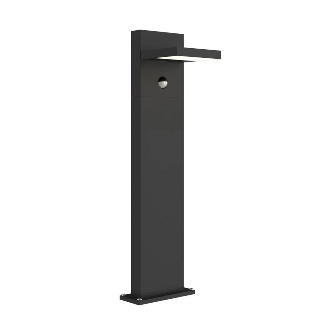 Silvan LED pullert i mørkegrå med sensor Silvan LED pullert med indbygget sensor sikrer et behageligt lysmønster med intelligent betjening. Det gør det muligt at tænde og slukke lyset efter behov, samtidig med at lampens tidløse stil skaber et harmonisk helhedsindtryk i udendørsområdet. Det roterende hoved skiller sig diskret ud fra den elegante stander i et mørkegråt design. Her sidder en opal diffusionsskive, der fordeler det bløde lys jævnt i den indstillede retning. Den integrerede sensor reagerer på bevægelse og giver mulighed for at indstille en tid. Det alsidige armatur afrundes af et let, men robust aluminiumshus. Data for bevægelsessensoren: – Rækkevidde 6-10 m – Justerbar lysvarighed (5 s – 10 min) – Registreringsvinkel 120°