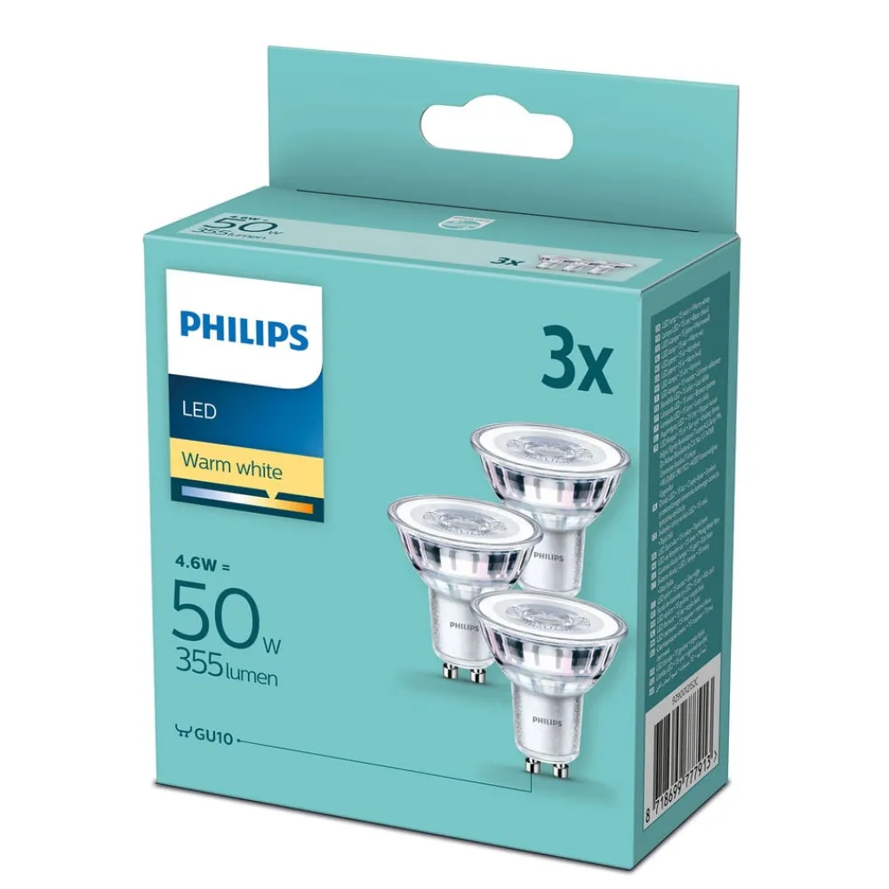 Philips LED-reflektor GU10 4,6W 2.700 K, 3 stk.