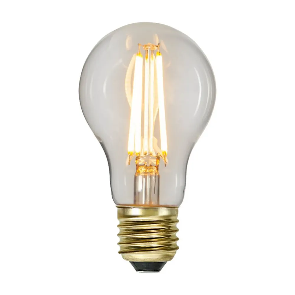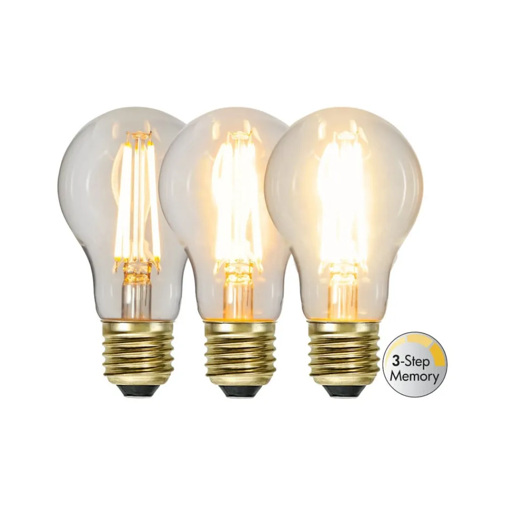 Med 2.100 K er lyset fra denne E27 LED-filamentpære i dråbeform særligt varmt og behageligt, hvorfor pæren er særligt velegnet til dekorativ belysning i boligen. Det varme lys kan dæmpes i tre trin med den eksisterende standard lyskontakt uden behov for en dæmper. Ved at tænde og slukke flere gange i træk kan lysstyrken indstilles til 70 lumen, 350 lumen eller 700 lumen.