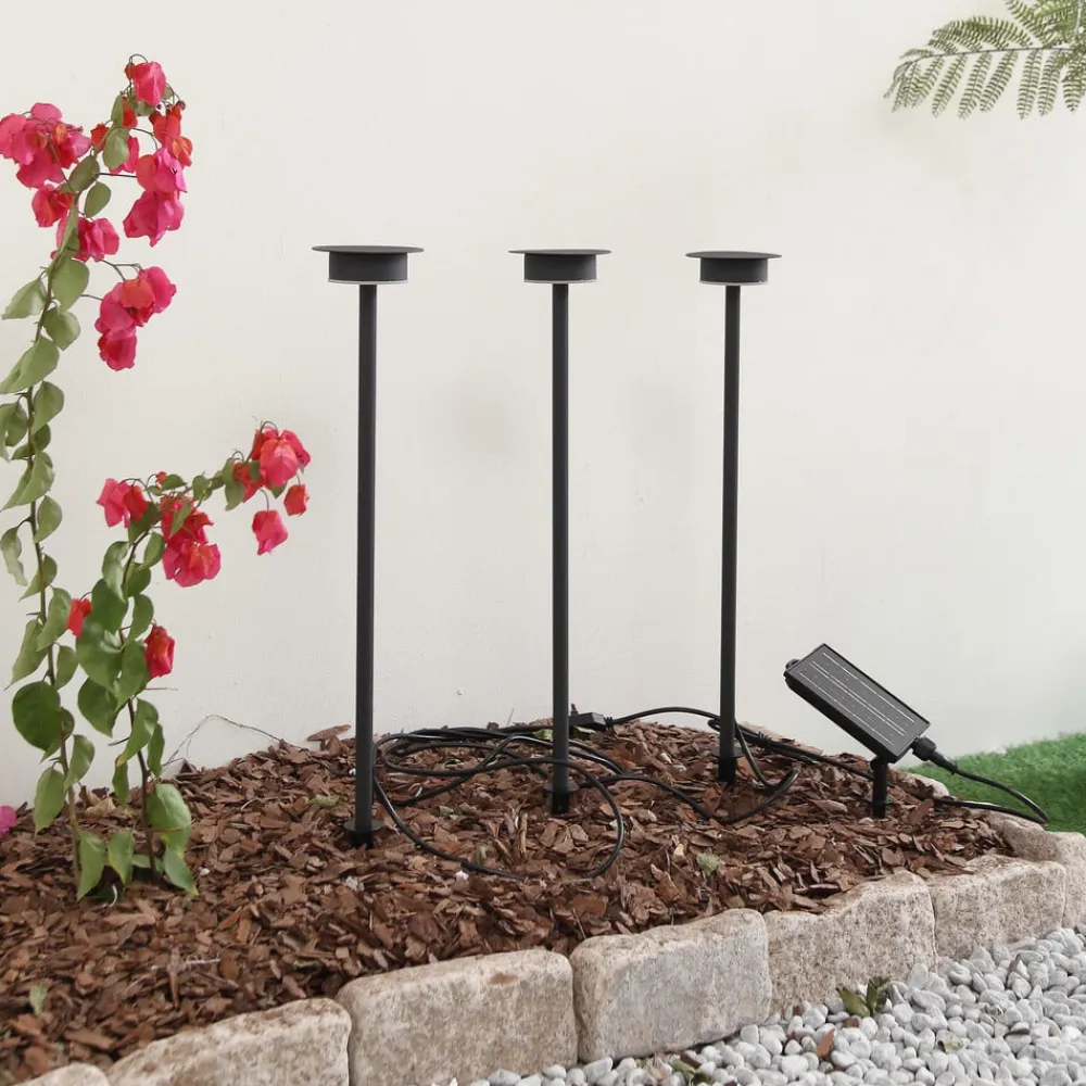 Lindby LED-solcellelampe Lyris, sæt med 3, sort, aluminium, 3.000K