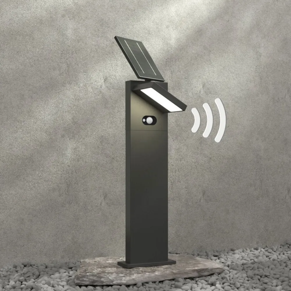 Silvan solcelledrevet LED-vejlampe i mørkegrå, med bevægelsessensor Den mørkegrå Silvan LED-vejlampe er den elegante løsning til solcelledrevet udendørsbelysning. Bevægelsessensoren aktiverer det behagelige lys efter behov og afhængigt af tidspunktet på dagen. Den slanke vejlampe imponerer med sit lineære format, der er lavet af let og robust aluminium. Det farvekoordinerede solcellemodul på toppen af armaturet dækker det elegant og skifter automatisk til dag- eller nattilstand. Den integrerede sensor aktiverer det diskrete lys i den opale pc-diffusor, når der registreres bevægelse, eller giver en kontinuerlig dæmpet lysstemning efter solnedgang. Sensordata: – Kan betjenes i 2 tilstande – Tilstand 1: lyser permanent efter solnedgang med 10 procent lysstyrke, som kortvarigt øges til 100 procent, når der registreres bevægelse – Tilstand 2: lyset er slukket, indtil der registreres bevægelse, hvorefter lysstyrken kortvarigt øges til 100 procent – Registreringsvinkel 120 grader – Lysets varighed 15 sekunder – Rækkevidde 6 – 10 meter