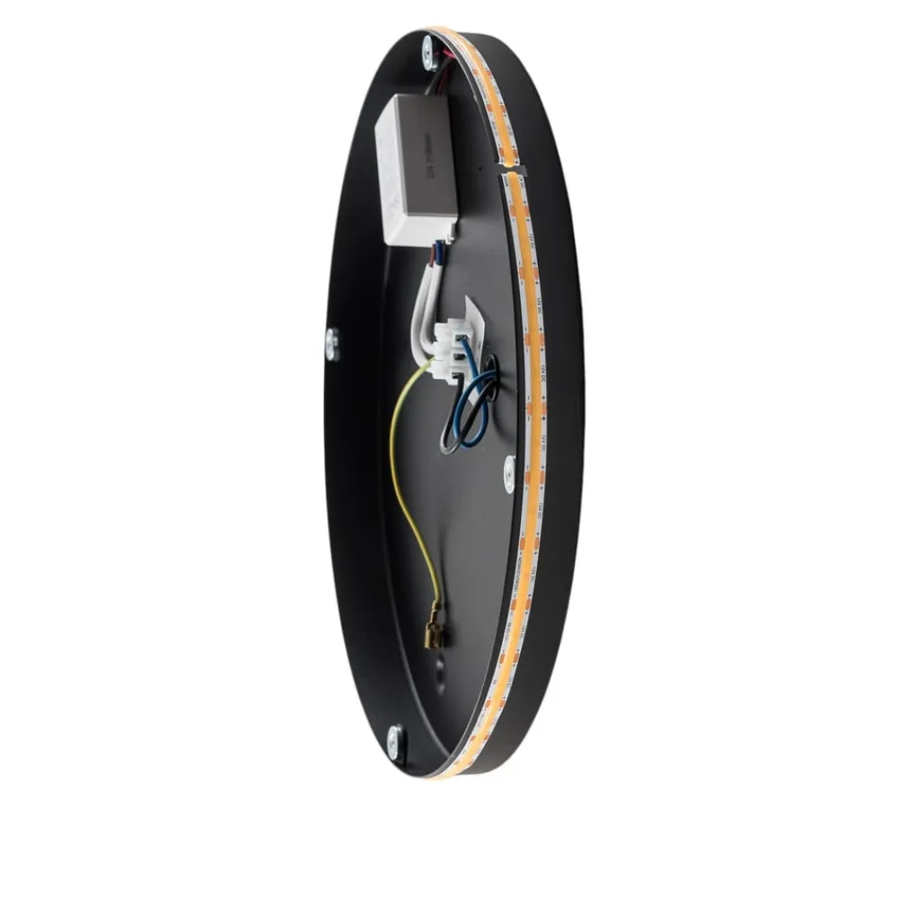 LED-spejlet Ring L, fremstillet af højkvalitetsglas, forener stilfuldt design med praktisk funktionalitet. Med en diameter på 39 cm og en varmhvid lysfarve på 3.000 K skaber dette spejl en indbydende atmosfære i ethvert rum. Den fast indbyggede LED-lyskilde sikrer en jævn belysning og fremhæver farvenuancerne med en høj farvegengivelsesindeks|ra-indeks på 90.