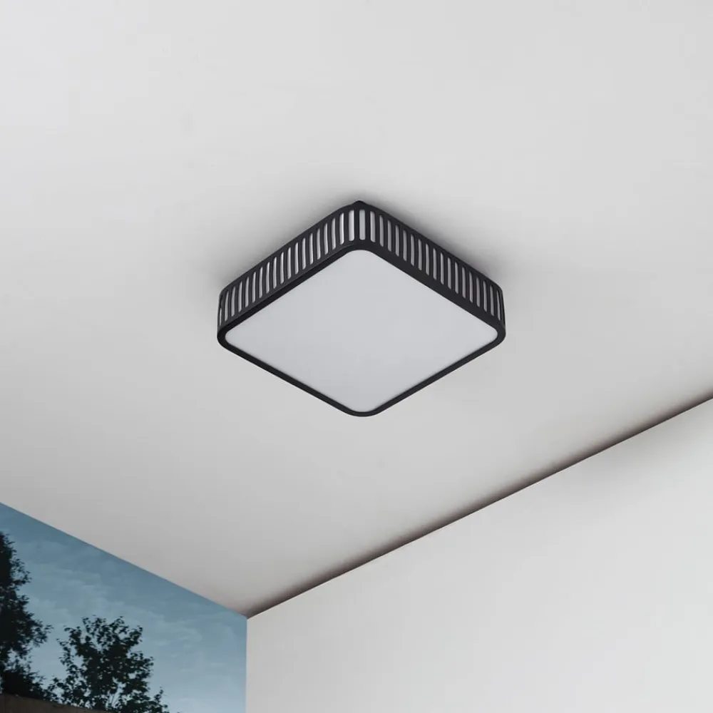 LED udendørs loftlampen Lurinda kombinerer moderne design med høj funktionalitet til udendørsarealer. Lampen er fremstillet af robust aluminium og polycarbonat og imponerer med sin kantede form og elegante sorte farve. Den integrerede LED-lyskilde udsender et varmhvidt lys, der med en farvetemperatur på 3.000 Kelvin skaber en indbydende atmosfære på altanen og terrassen.