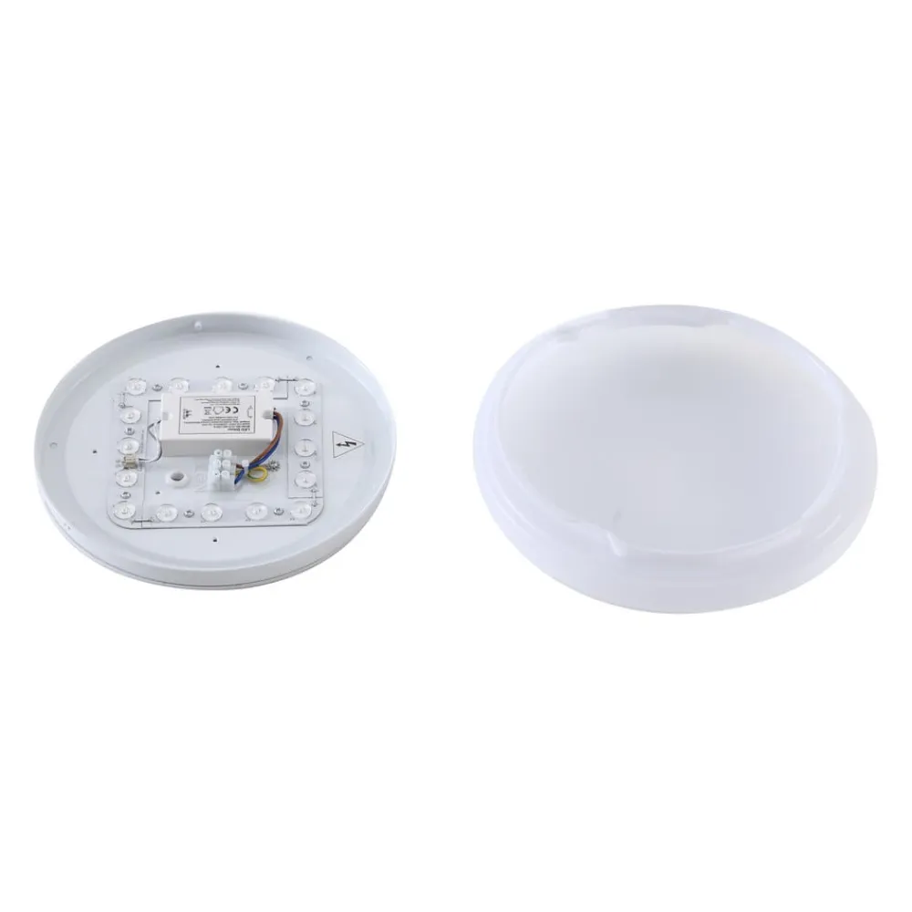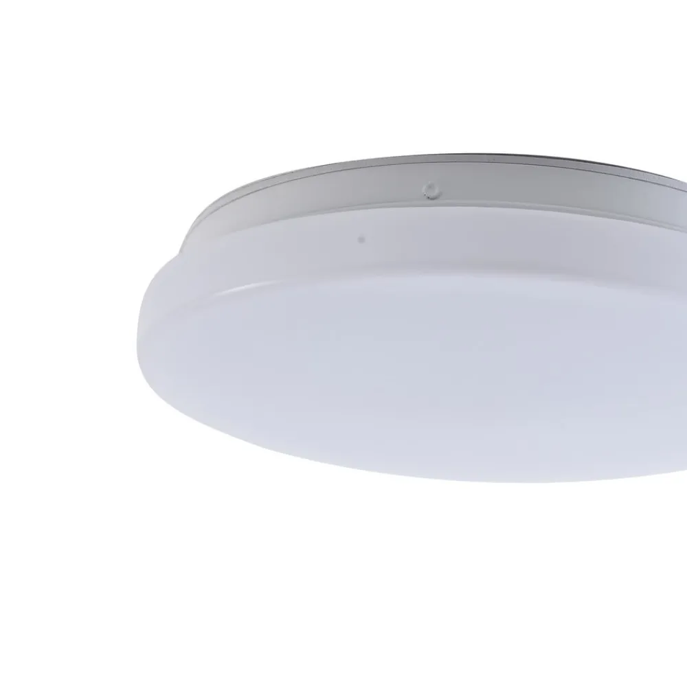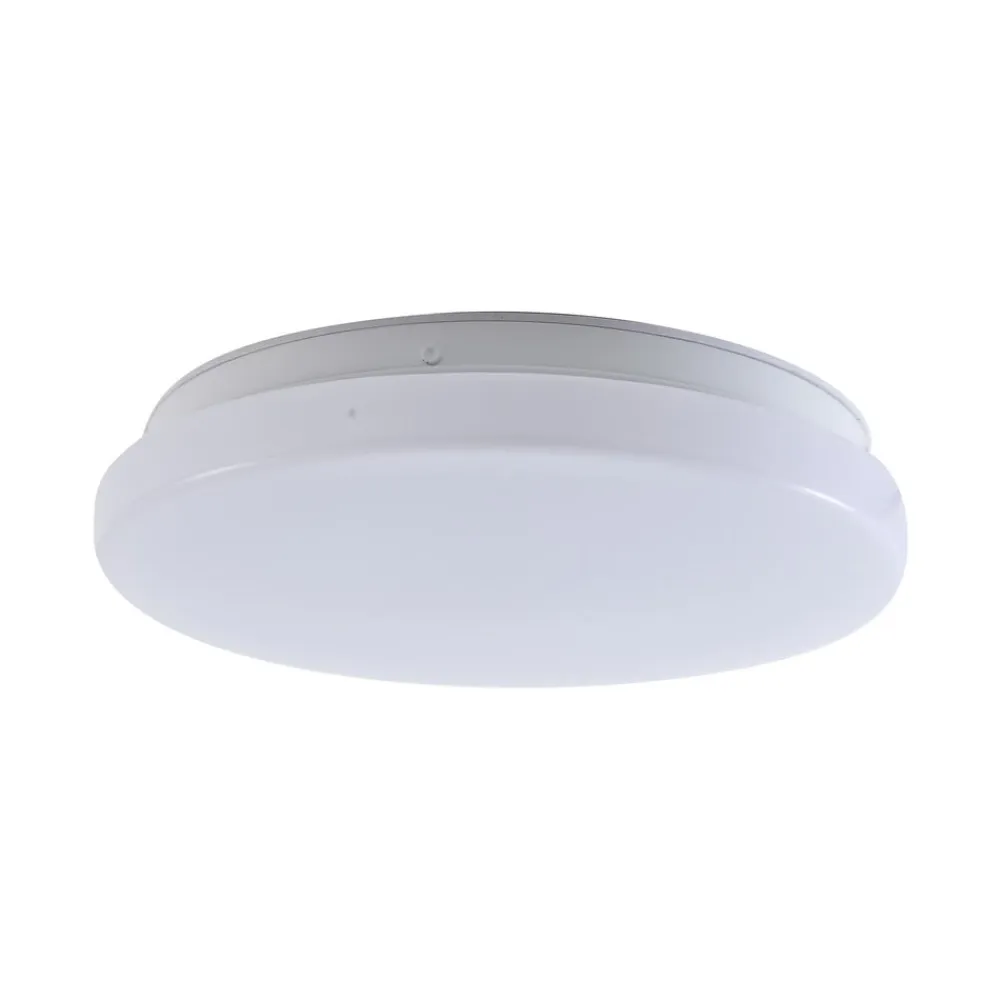 Praktisk LED-loftslampe med bevægelsesdetektor – til udendørsarealer, korridorer, værksteder m.m. Den runde Kirkola LED-loftslampe med plastdiffusor og metalbeslag har to særlige egenskaber: IP44-beskyttelsesgraden gør den velegnet til udendørsarealer eller andre fugtige rum. Den integrerede bevægelsesdetektor er nyttig til passager, carporte, korridorer osv. Tekniske data bevægelsesdetektor: – Registreringsvinkel 86° – Belysningsvarighed 30 s – Rækkevidde 6-8 m – Installationshøjde 3 m – Skumringssensor 15 lux