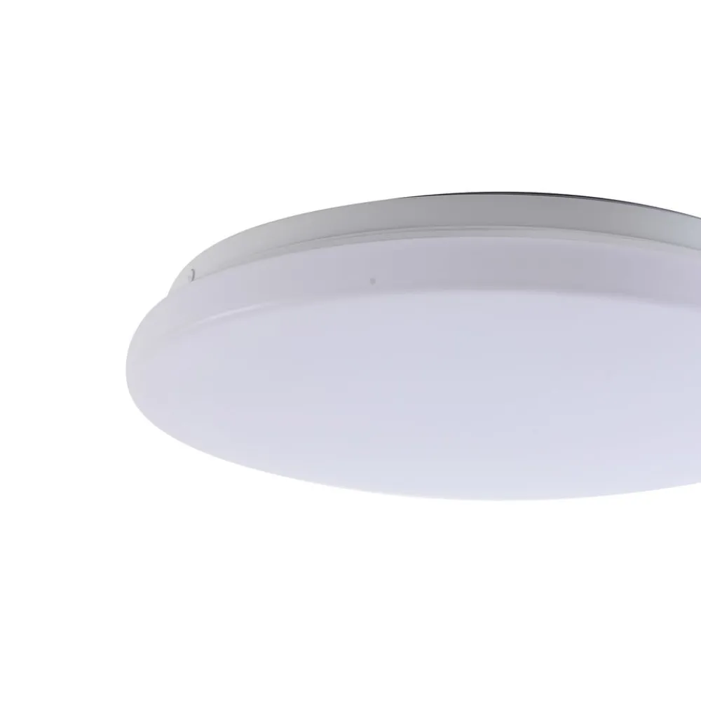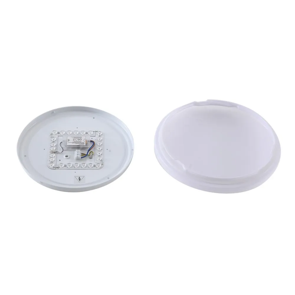 Praktisk LED-loftslampe med bevægelsesdetektor – til udendørsarealer, korridorer, værksteder m.m. Den runde Kirkola LED-loftslampe med plastdiffusor og metalbeslag har to særlige egenskaber: IP44-beskyttelsesgraden gør den velegnet til udendørsarealer eller andre fugtige rum. Den integrerede bevægelsesdetektor er nyttig til passager, carporte, korridorer osv. Tekniske data bevægelsesdetektor: – Registreringsvinkel 86° – Belysningsvarighed 30 s – Rækkevidde 6-8 m – Installationshøjde 3 m – Skumringssensor 15 lux