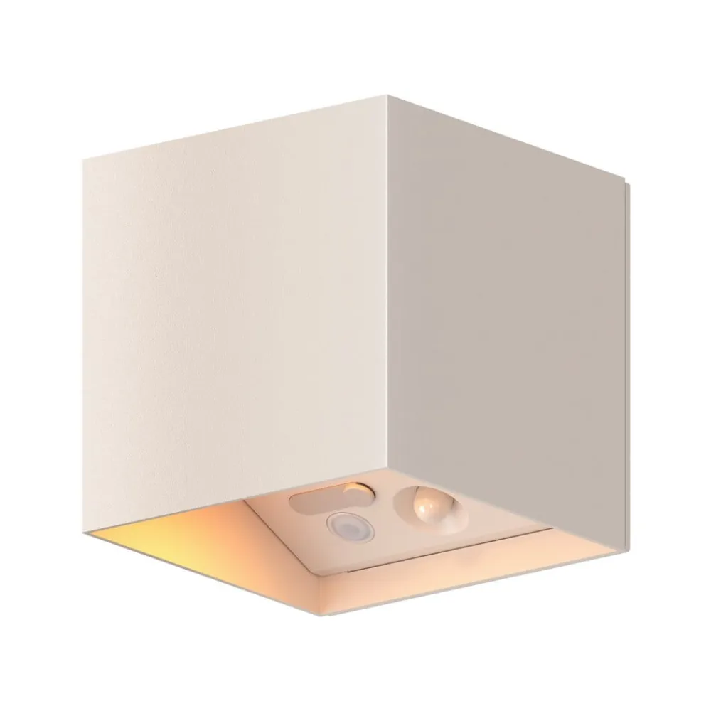 Den kubiske LED-væglampe Volterra er velegnet til indendørs og udendørs brug. Den er udstyret med en bevægelsessensor og spreder det varmhvide lys fra de indbyggede LED’er opad og nedad. Uanset om den monteres på facaden, i entréen, i gangene eller i stuerne, er effektfuld belysning garanteret med LED-væglampe Volterra. Væglampe er udstyret med et akkumulator og kræver derfor ingen strømforbindelse.
