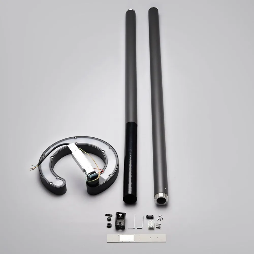 - Ø stolpe 5 cm; længde af stolpe gulvinstallation 40 cm; total højde 240 cm; højde af lampehoved 4 cm