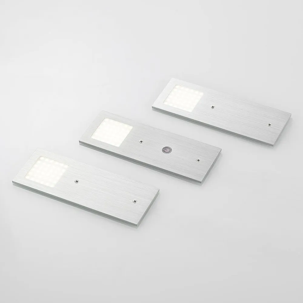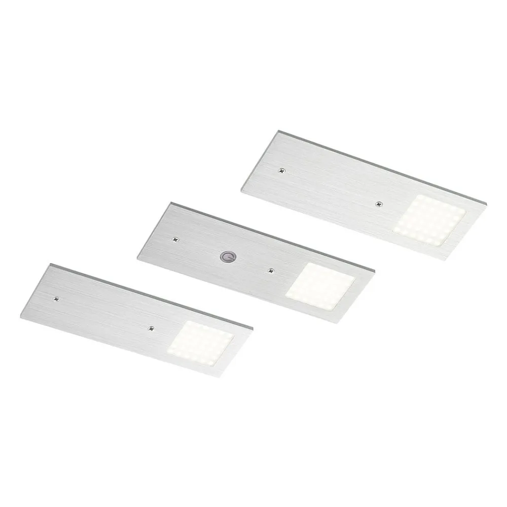 LED-aluminiumsunderbordslamper Nortra i praktisk sæt med tre, kantet form, dæmpbar via touchfunktion