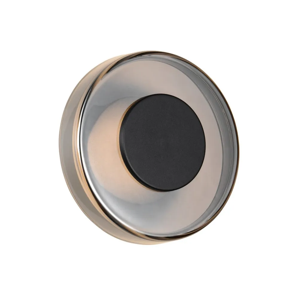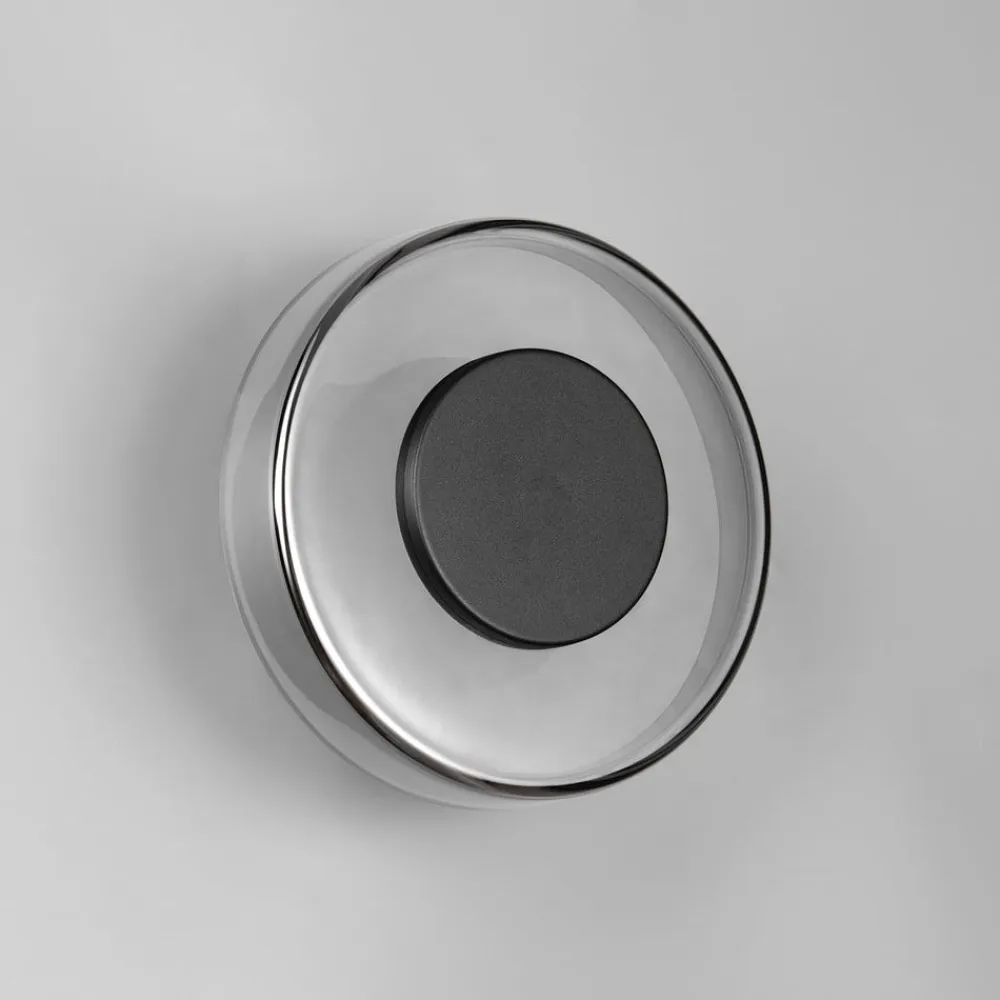 LED-væglampe Celeste, sort/krom, Ø 22 cm glas dæmpbar