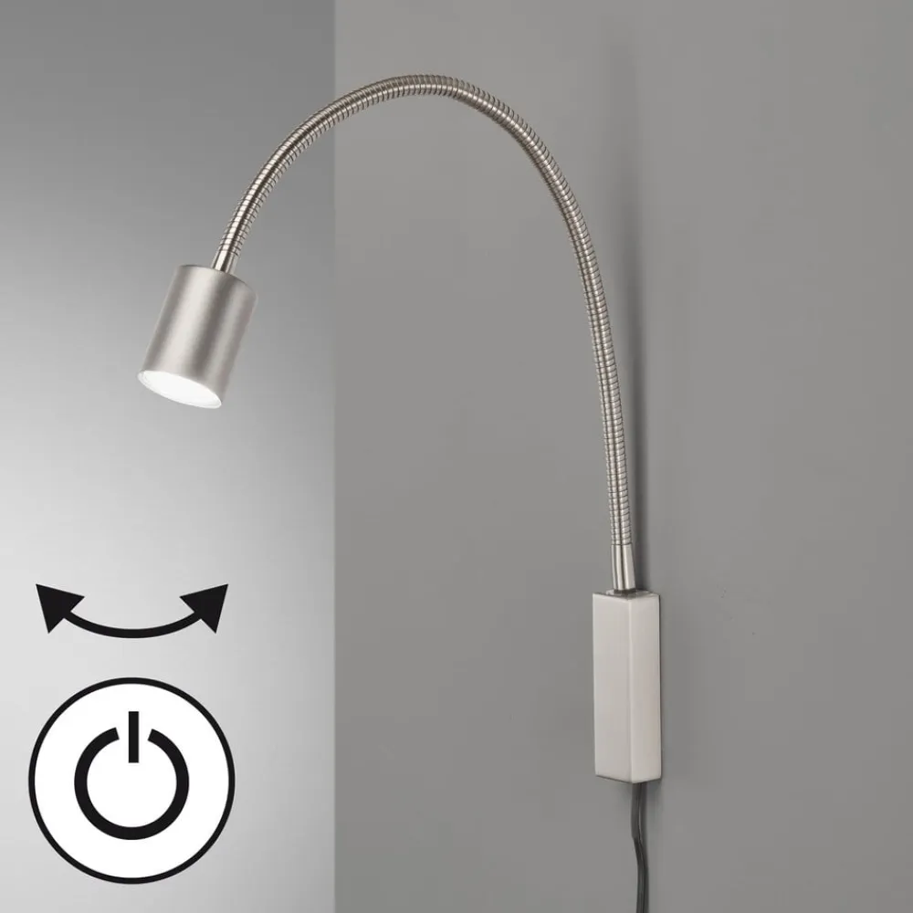LED-væglampe Justi, nikkelfarvet, højde 52 cm, metal