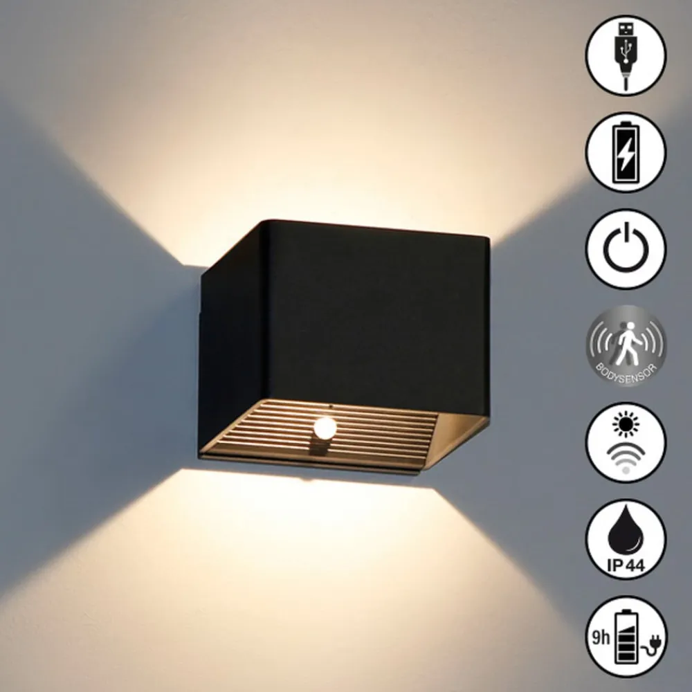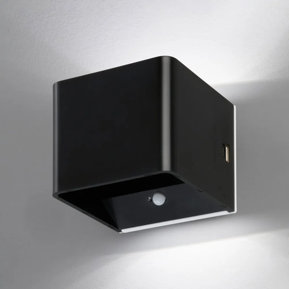 LED-væglampe Magnetics, sort, USB, bevægelsessensor