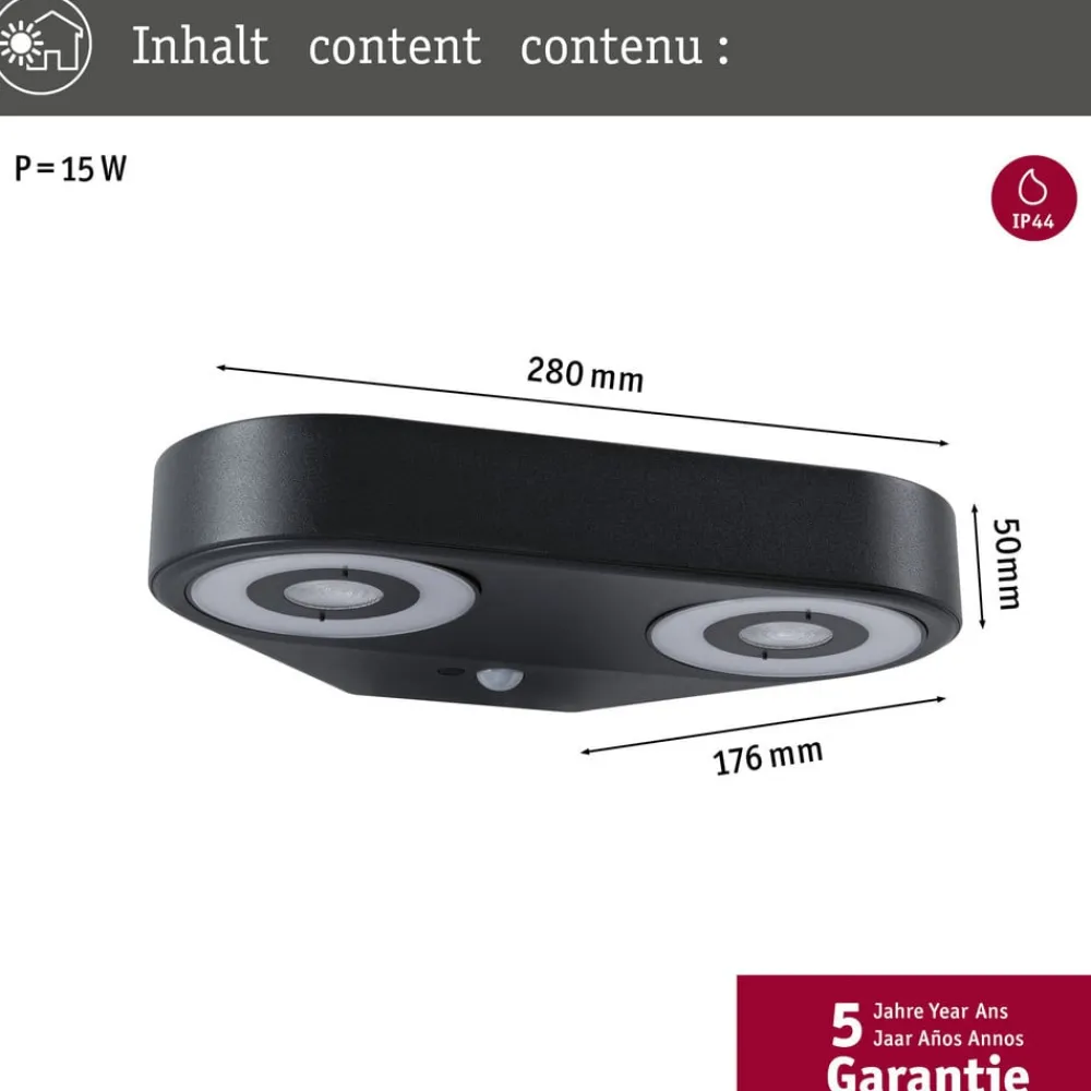 LED-væglampe Silma antracit 2 lyskilder IP44^Paulmann Best