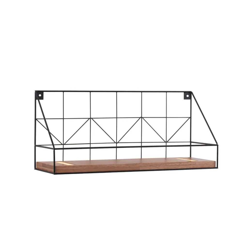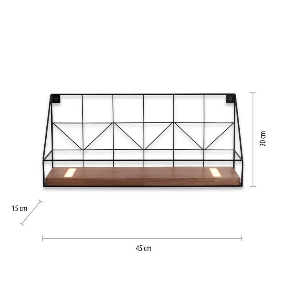 LED-væglystavle med træhylde, 45x15cm
