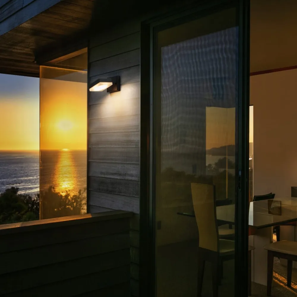 Firkantet designet Endura Classic Spot Square udendørs væglampe med justerbar lysenhed Endura Classic Spot Square udendørs væglampe er en diskret, fleksibel lyskilde langs facaden eller ved siden af indgangen. Den udendørs væglampe er fremstillet af aluminium og består af et sort vægbeslag og en lysenhed, der kan drejes 350° og svinges 90° fremad. Sidstnævnte er udstyret med en GX53-holder bag et mat polykarbonatdæksel.