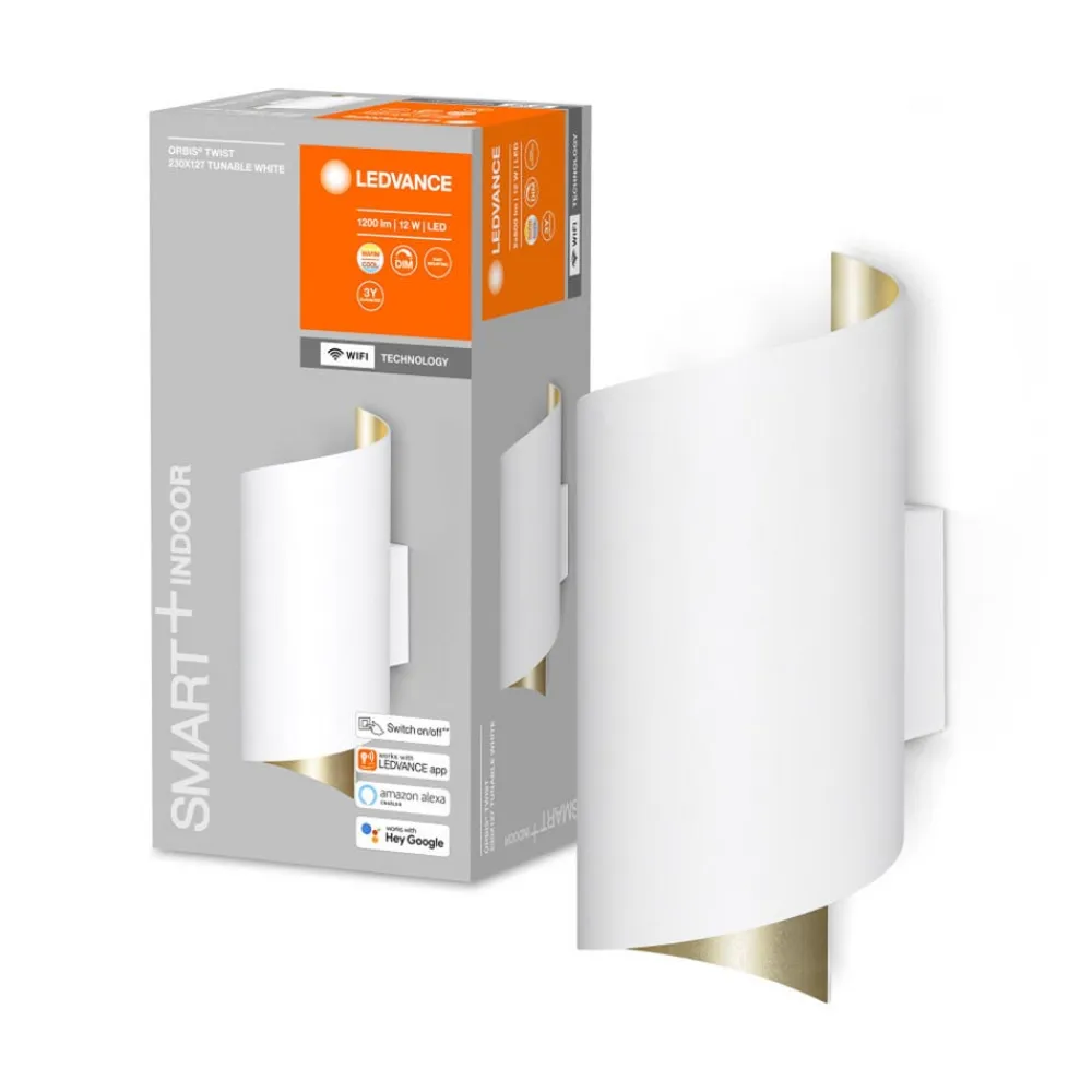 Orbis Wall Twist LED-vægarmaturet skaber med sit tofarvede design en attraktiv accent i stuen. Armaturet udsender lys opad og nedad, hvilket skaber en smuk lys- og skyggeeffekt. Orbis Wall Twist er velegnet til belysning af f.eks. gangen eller stuen. Farvetemperaturen kan varieres fra varm til dagslyshvid via app eller stemmestyring. Væglampen er integreret med LEDVANCE SMART+ WiFi-teknologi via WLAN.