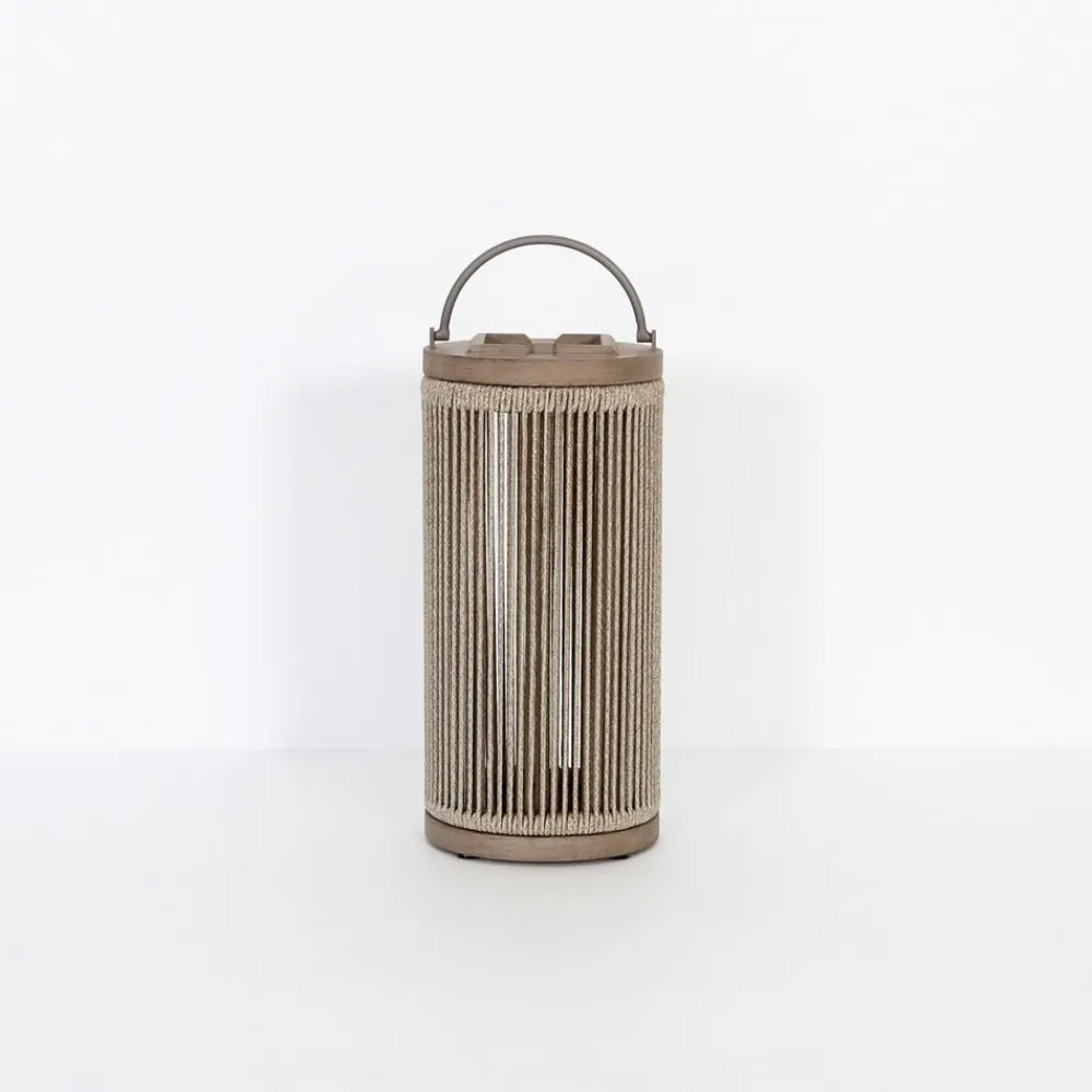 Elegant, naturligt udseende Rop&Strip LED-gulvlampe med solcellemodul Rop&Strip LED-gulvlampe med solcellemodul minder om en lanterne i sit udseende. Dens naturlige udseende understreges af farven og materialet. Det flettede reb i kombination med robust aluminium og fine teakdetaljer gør den til en tiltalende lyskilde i udendørsområder. Takket være det moderne solcellemodul kan der vælges og indstilles tre forskellige tilstande: – 1. tilstand: Parametrene strømforbrug, strømreserve og mørketid overvåges, og LED’ernes lysstyrke baseres på disse for at forblive tændt hele natten – 2. tilstand: Bevægelsessensor er tændt og lyser automatisk i skumringen, så snart den registrerer bevægelse – 3. tilstand: Lyset er tændt permanent og kan brænde i op til 5 timer, når det er fuldt opladet. Lysintensiteten kan justeres individuelt, hvilket forlænger lysets varighed til op til 200 timer. Bevægelsessensoren er slukket – Sensorrækkevidde: 6 m, detekteringsområde: 120°