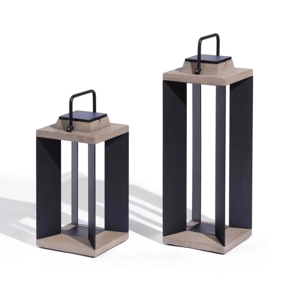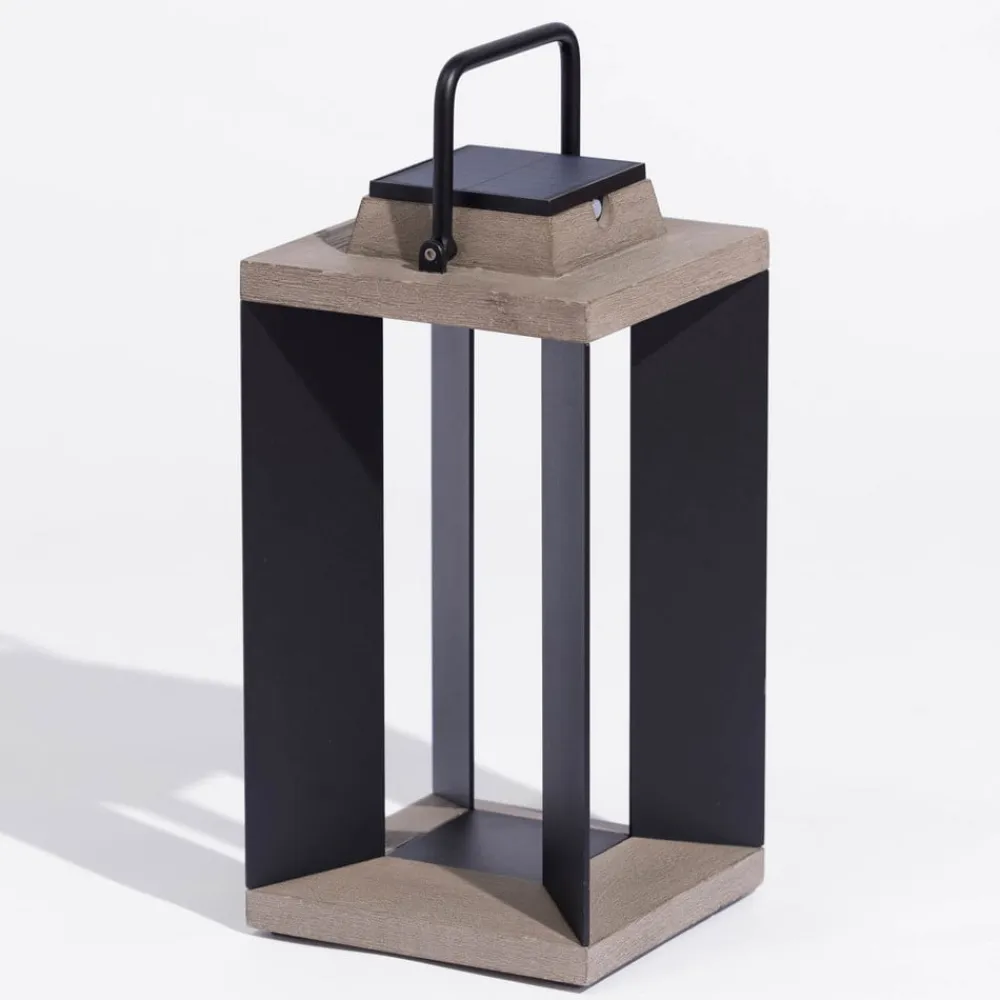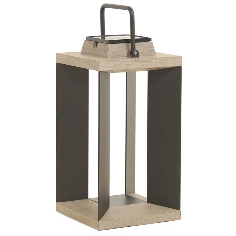 Udstyret med bevægelsesdetektor: Teckalu LED-solcellelanterne fremstillet af Duratek og ekstruderet og pulverlakeret aluminium Den moderne lanterneform, de neutrale farver og de to opladningsmuligheder gør den bærbare LED-solcellelanterne Teckalu til et uundværligt tilbehør til udendørs belysning. Teckalu kan hurtigt sættes op overalt, f.eks. på altanen, terrassen eller ved siden af indgangen til huset. Når solen skinner, oplades batteriet og frigiver energien til LED-lyskilden om natten, så Teckalu oplyser omgivelserne med varmt, hvidt lys. Hvis sollyset ikke er stærkt nok – f.eks. om vinteren – kan batteriet også oplades via et USB-kabel fra lysnettet. Teaktræet er ekstremt nemt at pleje. Det blev først børstet kraftigt for at opnå en struktureret finish. Efter et første lag vandtæt primer blev der påført fem lag grå finish. Denne proces beskytter træet mod vejret, UV-stråler og forskellige pletter som vin, kaffe eller olie. Den grå farve understreger det moderne, smarte look. Vedligeholdelse: Må ikke olieres. Rengøres med sæbevand – dæmpbar