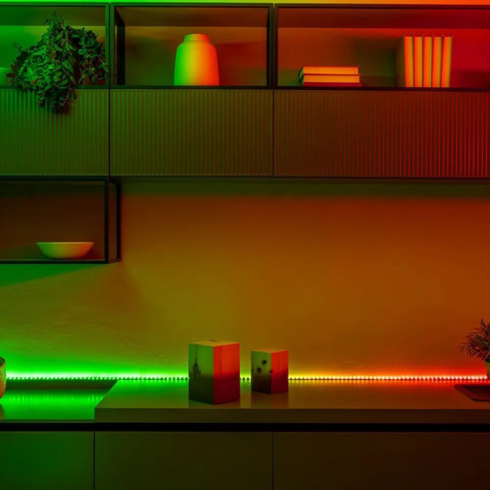 Tekniske detaljer/kompatibilitet – kan konfigureres via Wi-Fi og Bluetooth – styres via den gratis Twinkly-app, som fås til iOS og Android – kompatibel med stemmeassistenter som Google Home og Amazon Alexa samt Apple HomeKit, Homey og Razer Chroma™ RGB (kræver Twinkly Chroma Connector for at fungere) – kan forlænges op til 3 m med en Twinkly Line Extension – adgang til 16 millioner forskellige farvetoner