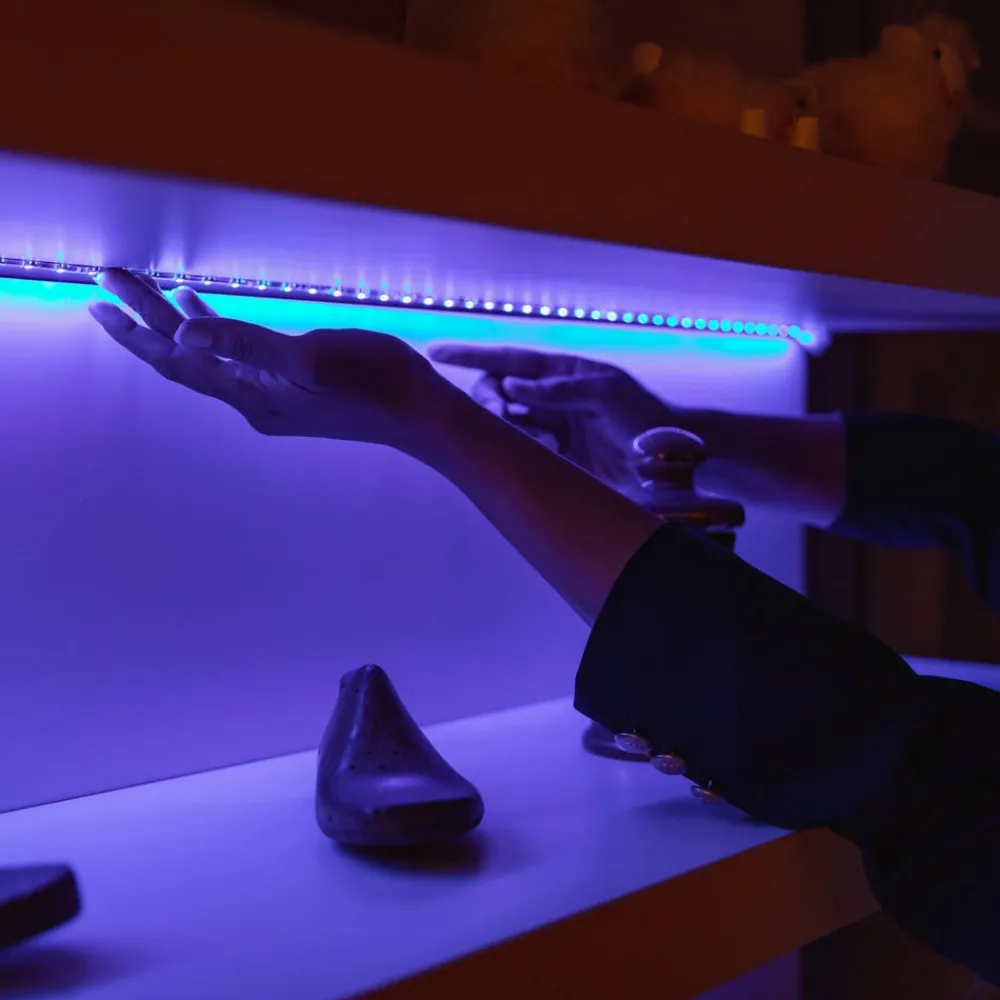 Twinkly Light Line – den farverige LED-strip til unikke lyseffekter Light Line LED-strip fra Twinkly er en smart LED-strip, der kan styres via en app eller endda en stemmeassistent. Takket være styringen kan der skabes unikke effekter, farvegradueringer og farveanimationer, og det er også en leg at skifte i selvskabte grupper via appen. Twinkly-appen giver dig adgang til en lang række færdige effekter og animationer, men du kan også skabe dine egne effekter fra bunden ved hjælp af FX Wizard-skabelsesværktøjet. Twinkly Line kan grupperes med andre Twinkly-enheder for at skabe større, synkroniserede lysinstallationer, og LED-strippen har en selvklæbende og magnetisk bagside, som gør den nem at montere overalt. Uanset om den er tydeligt installeret eller gemt væk et sted, vil dens unikke belysningskoncept og sorte, elegante look gøre den til et HighLight i dine egne fire vægge.