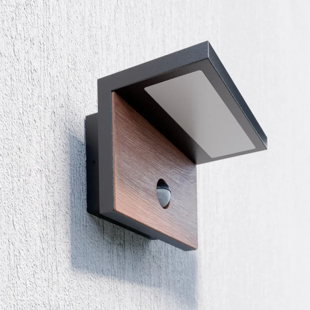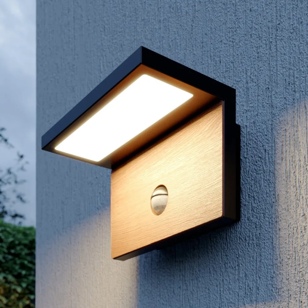 Den udendørs LED-væglampe Lignus er især kendetegnet ved dens praktiske funktionalitet. Udstyret med en skumringssensor og en bevægelsessensor tilbyder den energibesparende og samtidig dekorativ belysning udendørs.