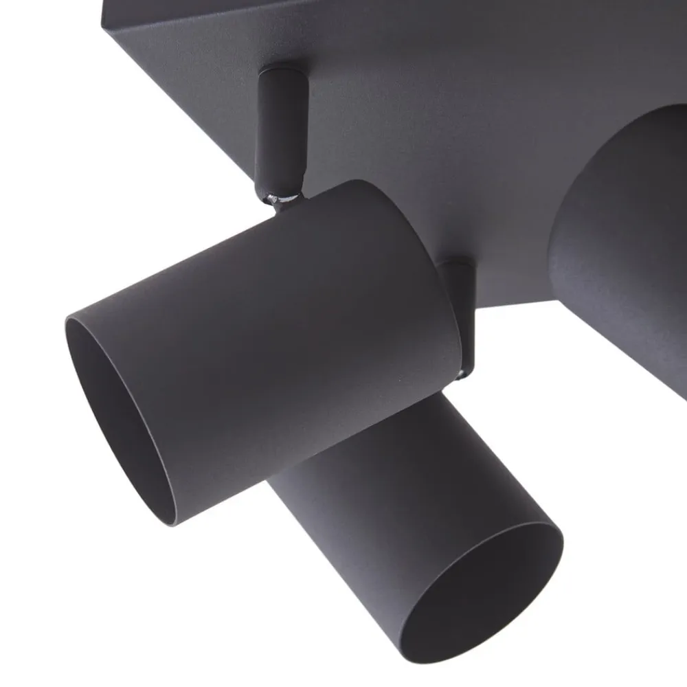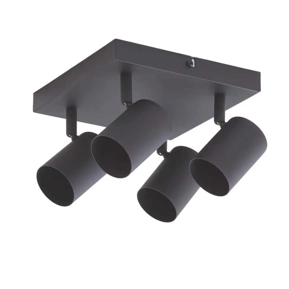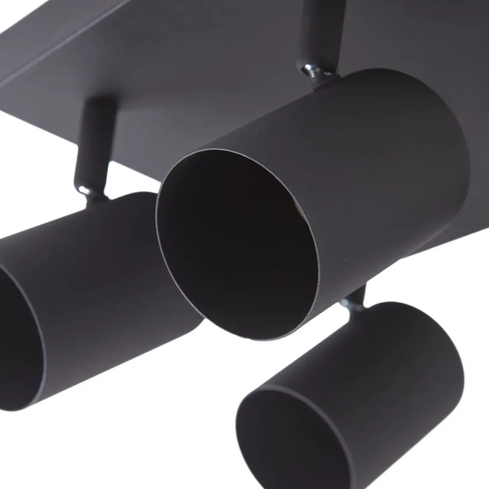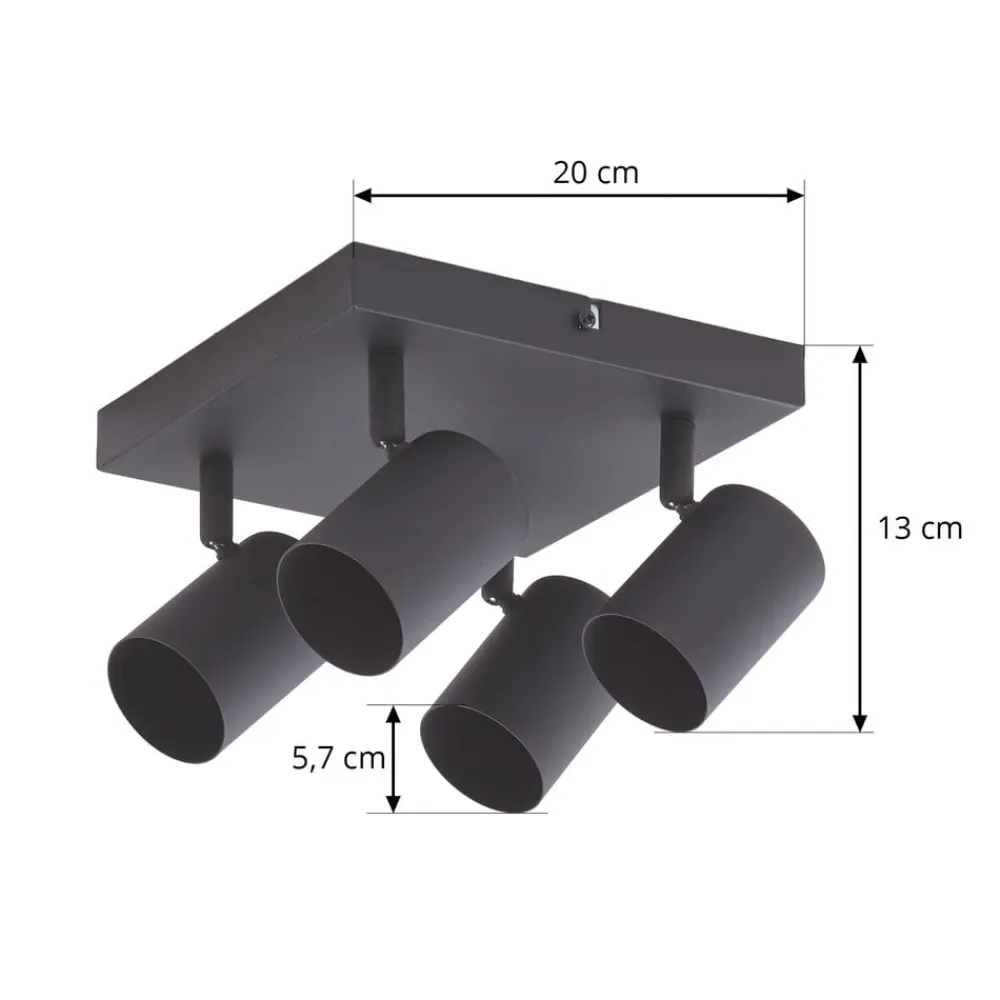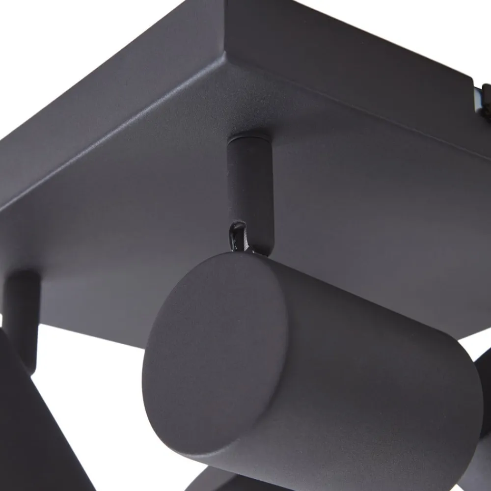 Firkantet Jorell loftspot med justerbare lampehoveder, 4 lyskilder Jorell loftlampen passer perfekt ind i mange boligmiljøer. Det enkle design giver mange anvendelses- og kombinationsmuligheder og kan nemt integreres i dit moderne interiør. Lysstyrken på loftspottet med 4 lyskilder kan reguleres ved hjælp af kompatible lyskilder og en ekstern fasedæmper. Rammen og spottene er udført i sandsort. Alle de kvaliteter og HighLights, der kendetegner Lindby-mærket, er samlet i denne loftlampe. Armaturet skaber en enestående atmosfære i ethvert rum og tilføjer en tidløs komponent til dit interiør. Jorell er udstyret med fire GU10-fatninger. Spotsene kan drejes, så lyset kan rettes i den ønskede retning.