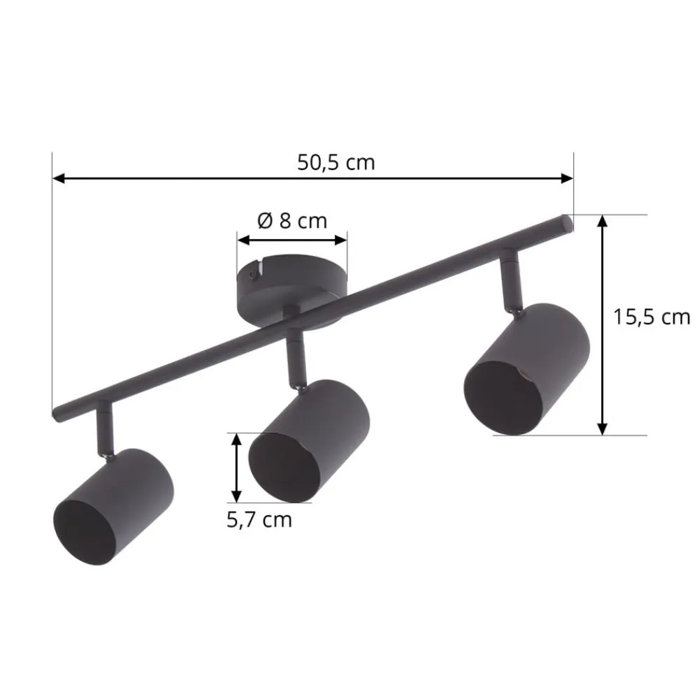 Lindby loftspot Jorell, sort, 51 cm, 3 lyskilder, GU10