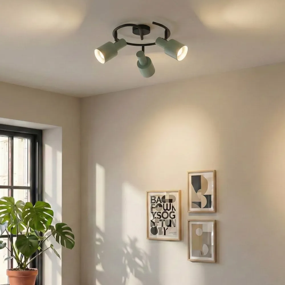 Lindby Arbejdsrum/Kontor|Gang>loftspot Ovelia, grøn/sort, 3 lyskilder, E27