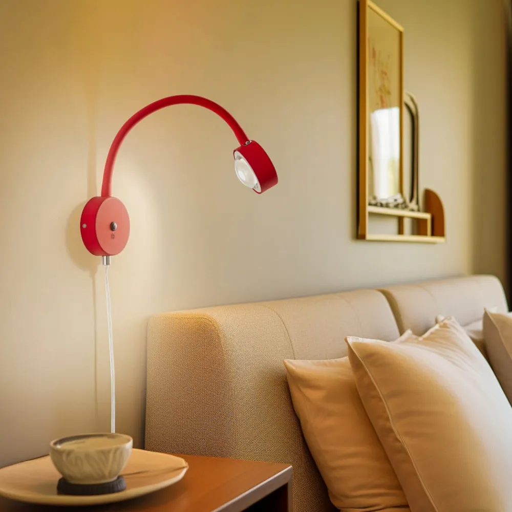 Jyla væglampe med fleksibel arm og integreret dæmper Jyla væglampen har et stik, så den kan placeres fleksibelt i stuen. Alt, hvad du behøver for at betjene den, er en stikkontakt i nærheden. Den integrerede fleksible arm er særlig praktisk, så retningen på det varmhvide lys kan justeres efter personlige behov på ingen tid. Jyla er ideel som lyskilde på kontoret, i stuen eller i soveværelset. Med sin moderne røde farve er væglampen et særligt blikfang i mange miljøer, og den integrerede kontakt på vægbeslaget gør det muligt at tænde og slukke lyset, som man plejer. Takket være 3-trins dæmpningsteknologien med integreret slukfunktion kan den også dæmmes til tre forskellige lysstyrkeniveauer ved at trykke på kontakten flere gange: 100 %, 50 % og 25 %. Den medfølgende GX53-lyskilde har en buet linse og ser derfor ud som en glashalvkugle.