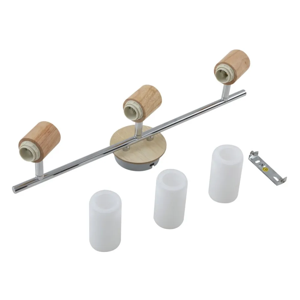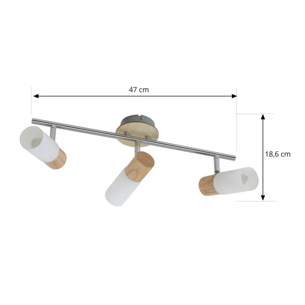 Christoph loftspot med tre lamper med lyst træ og hvidt glas