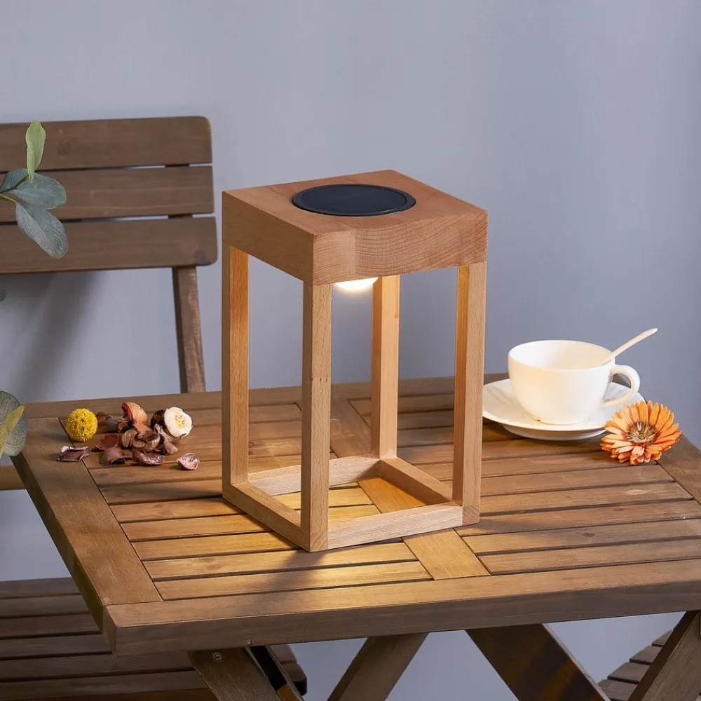 Lindby Dekorationsbelysning|Solcellelamper>LED-solcellelampe Peransa, træ, 25 cm høj