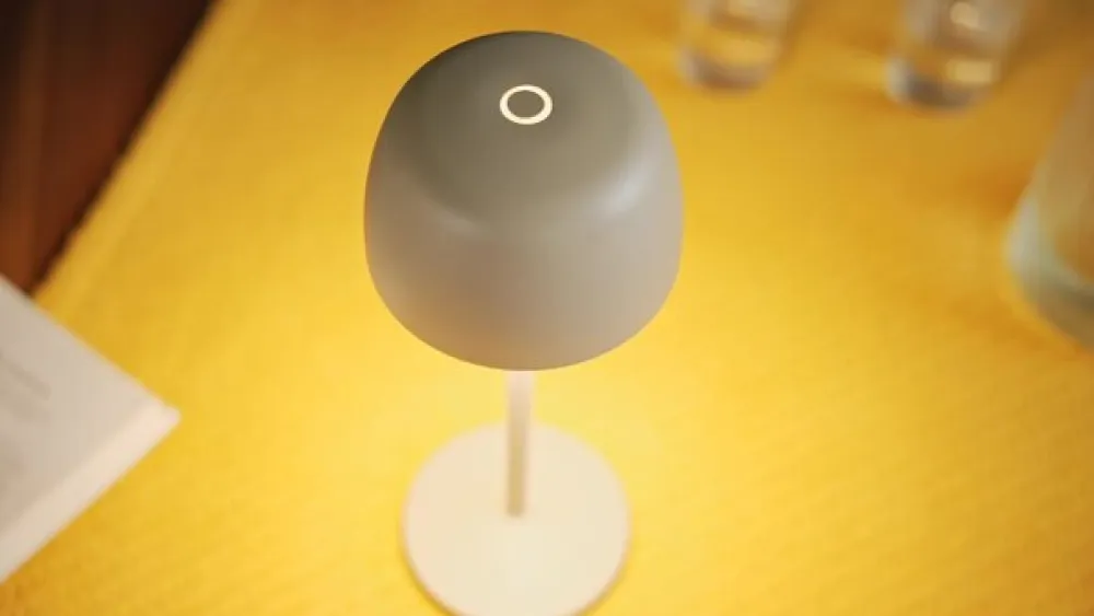 Batteridrevet LED-bordlampe Arietty i sandbeige
