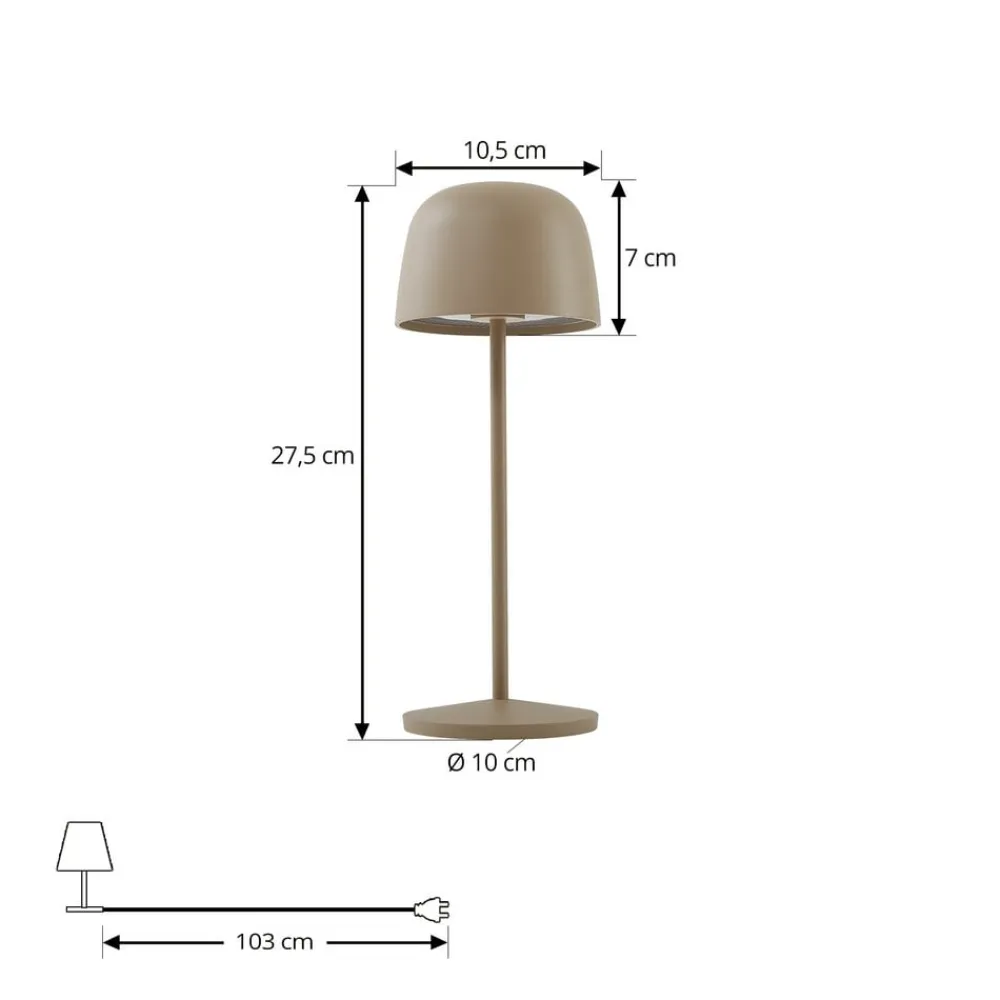 Denne bordlampe må ikke mangle på terrassen. Bordlampen kan nemt tændes og slukkes med en afbryder og er udstyret med en dæmper, der skaber en behagelig atmosfære. Den varmhvide lysfarve bader dit udendørsområde i en stemningsfuld atmosfære. Lampen er perfekt til din terrasse eller have og fås i sandbeige. Fremragende design og en unik boligfølelse kendetegner denne lampe fra Lindby. Kapslingsgraden IP65 beskytter lampen mod støv og vandstråler.