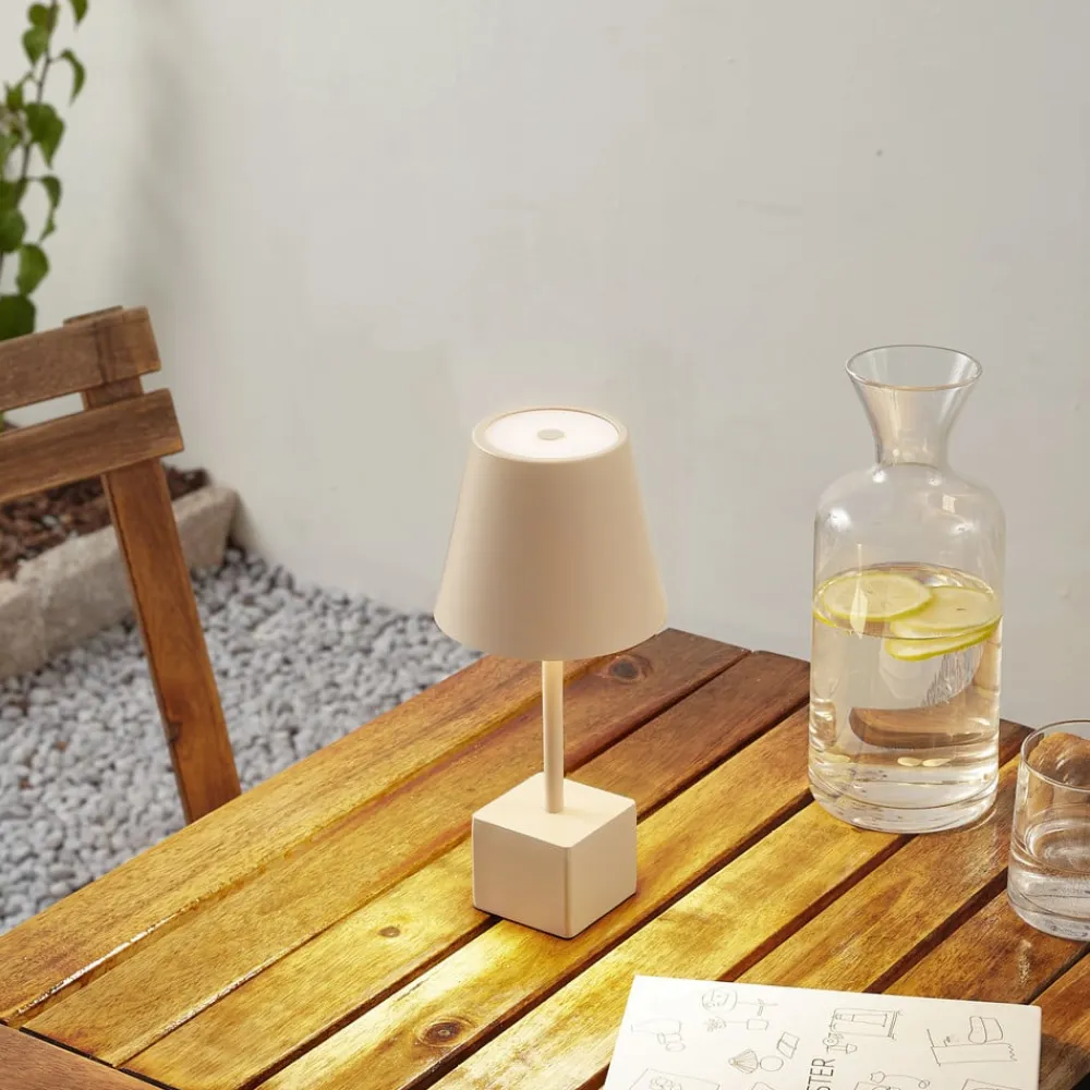 Lindby Dekorationsbelysning|Terrassebelysning>LED genopladelig bordlampe Janea CUBE, beige, metal