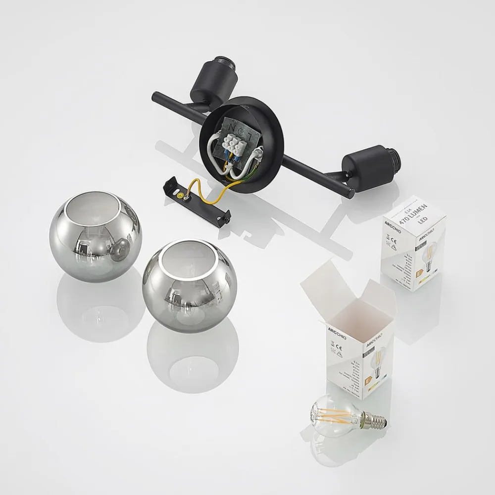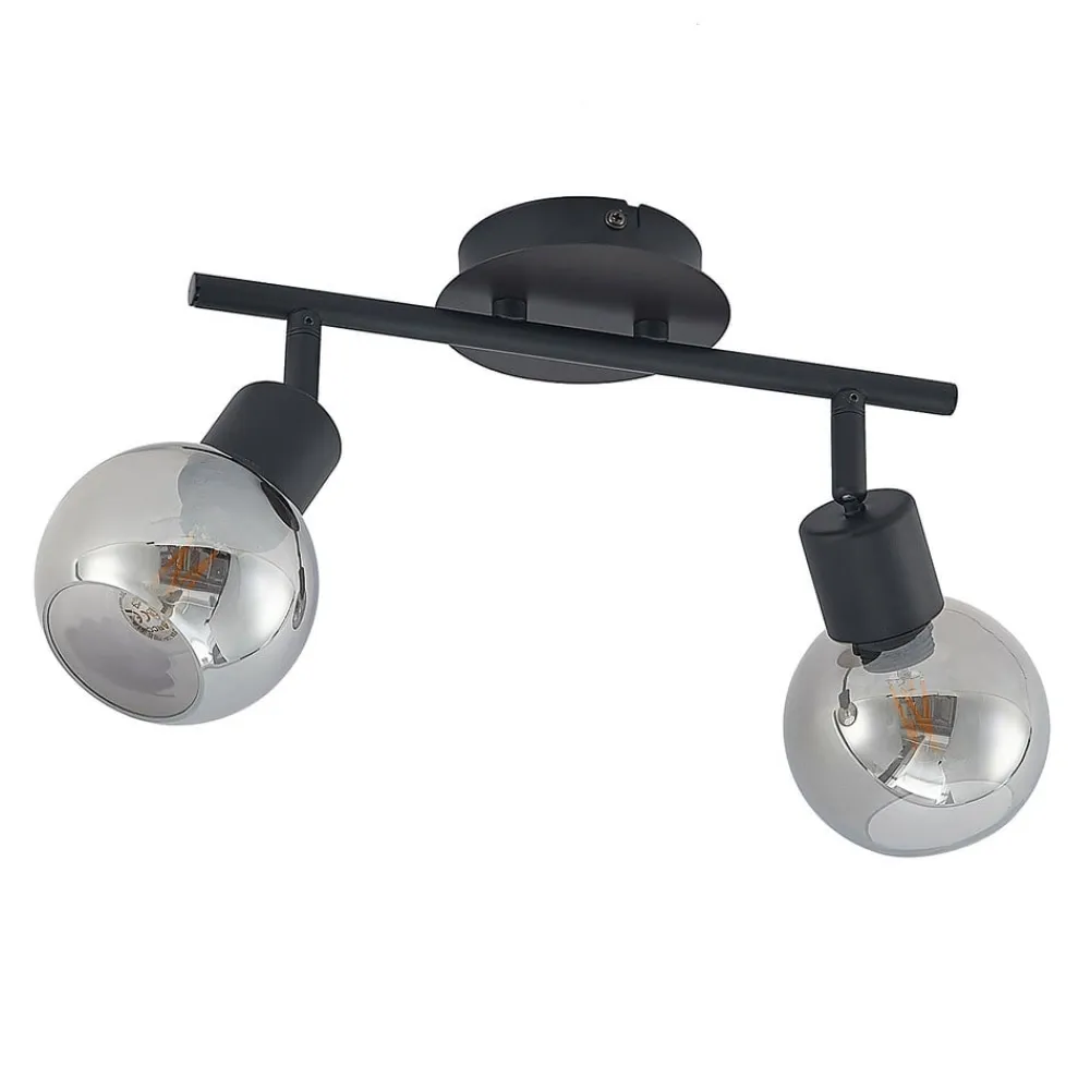 Sort spot Eridia i design med 2 lyskilder og røgfarvede lampeskærme