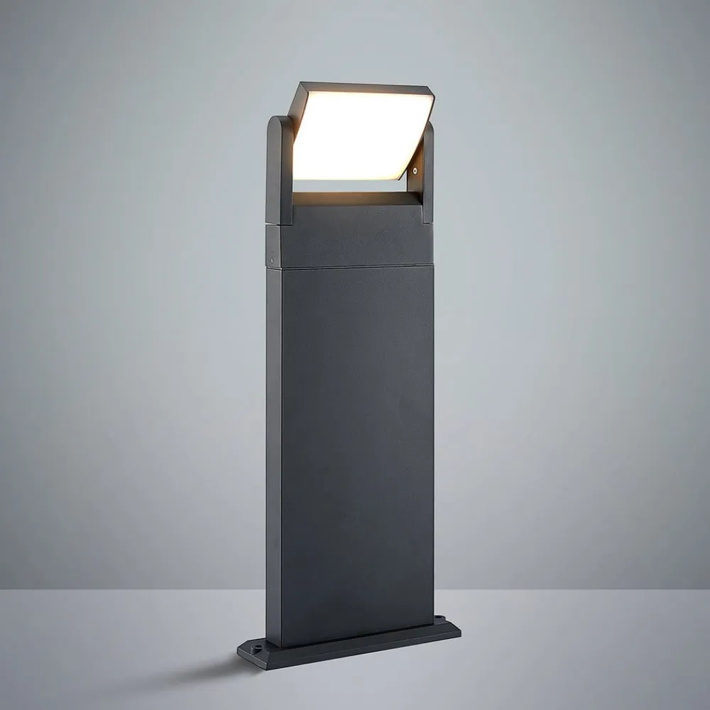 Cathalena LED-vejlampe i mørkegrå Cathalena LED-vejlampen imponerer med sit slanke og moderne design. Lampekroppen er lavet af aluminium og kommer i en diskret mørkegrå farve. Øverst troner en varmhvid LED-pære, som giver perfekt belysning af indkørslen eller haven. Takket være kapslingsgraden er Cathalena LED-gadelampen beskyttet mod støv og vandsprøjt og kan derfor modstå udendørs vejrforhold. Den leveres også med et justerbart lampehoved, som giver mulighed for fleksibel belysning – kapslingsgrad IP54 – justerbart lampehoved 340°