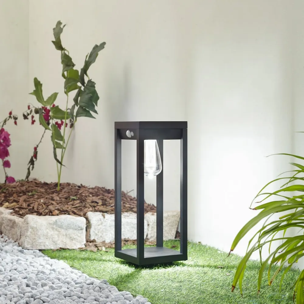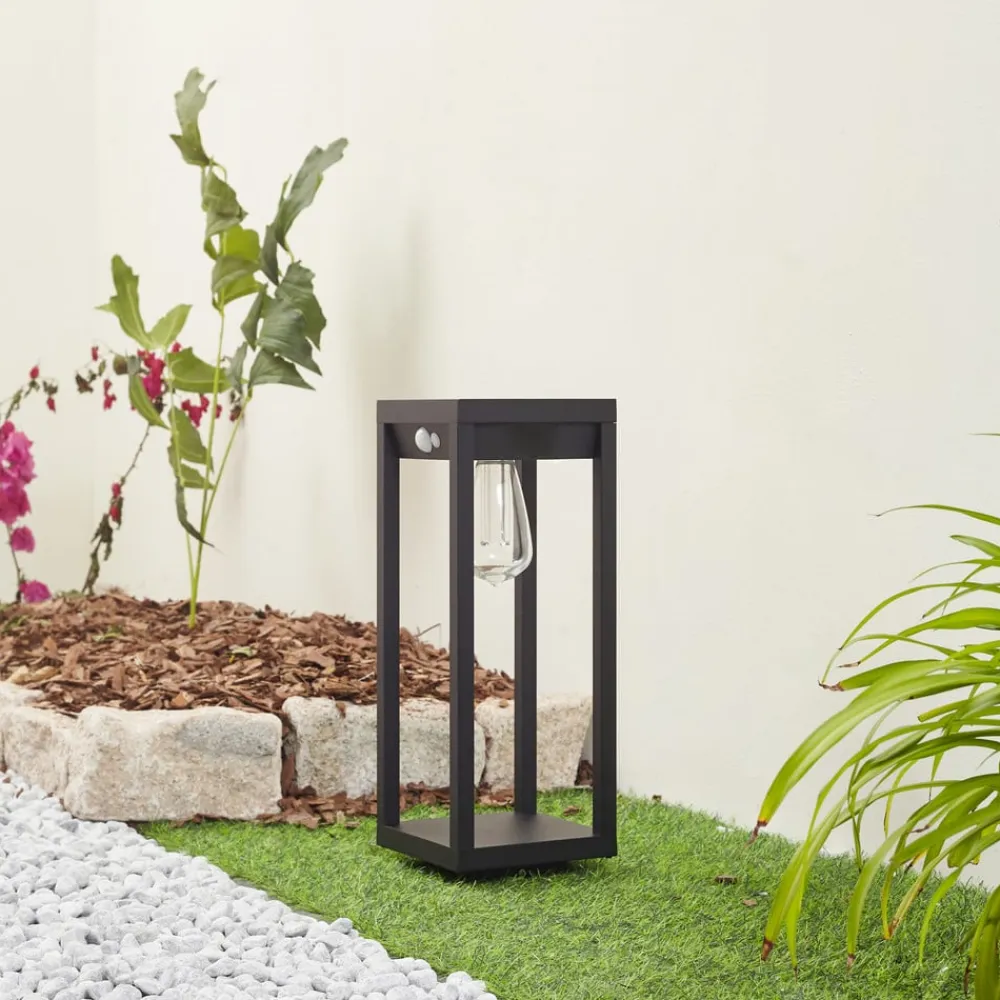 Smart styrbar Enea LED-sokkellampe med bevægelsessensor Takket være sin solcelledrift kan Enea LED-sokkellampen placeres fleksibelt udendørs. Den kan f.eks. installeres som lyskilde i nærheden af indkørsler, indgangspartier eller terrasser. Særligt praktisk – sokkellampen kan styres via Tuya-appen på en smartphone eller tablet. Det gør det muligt at justere lysfarven fra varm hvid til dagslys hvid på ingen tid. Det er også muligt at styre farveskiftet og justere lysstyrken. Enea har også en sensor, der tænder lyset automatisk, så snart der registreres bevægelse i omgivelserne – Registreringsafstand bevægelsessensor op til 10 meter – Belysningstid: 5 sekunder – 60 minutter – Lysstyrke: 0 – 250 lumen
