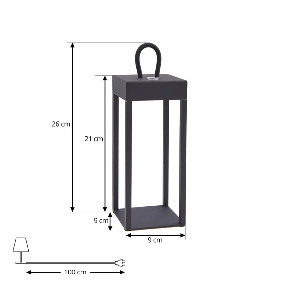 Belysningskunst til hjemmet: Iruna LED-bordlampe Iruna LED-bordlampe imponerer ikke kun med sit stilfulde design i sort metal, men også med sin alsidighed til brug i stuen, gangen og på terrassen. Denne moderne lampe bringer ikke kun elegance til dine rum, men er også energieffektiv takket være det integrerede LED-modul. Iruna LED-bordlampen kan dæmpes trinløst (10% – 100%) via en integreret kontakt, så den til enhver tid kan give den rigtige lysstyrke. Tekniske data – inkl. 2000 mAh Li-ion-batteri – inkl. USB-C-kabel – belysningstid 2,5 timer – opladningstid 2-3 timer – opladningsstrøm 1A