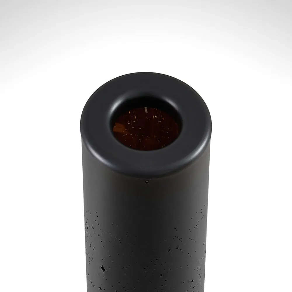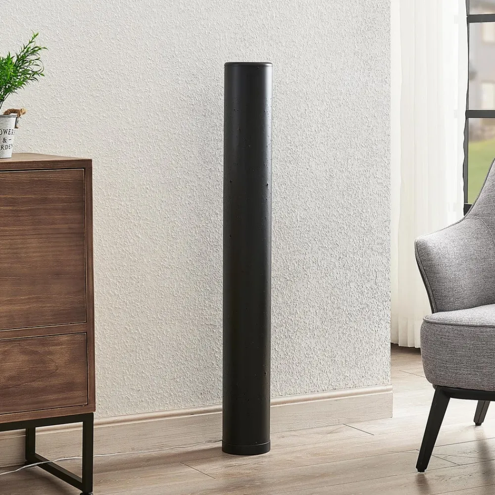 Den moderne LED-gulvlampe Lengla imponerer med individuelle lyseffekter Den stilfulde LED-gulvlampe Lengla har et slående helt sort look. Denne specielle lyskilde har et moderne design i form af en aflang cylinder og passer derfor vidunderligt ind i moderne interiør. Den sorte krop har små huller, som lyset skinner igennem. Indersiden af den cylindriske lampeskærm har en gylden overflade, der reflekterer det varmhvide lys. Når lyset er tændt, skinner det med imponerende lyseffekter, der er et syn i enhver stue og nogle gange minder om magien i en blinkende stjernehimmel.