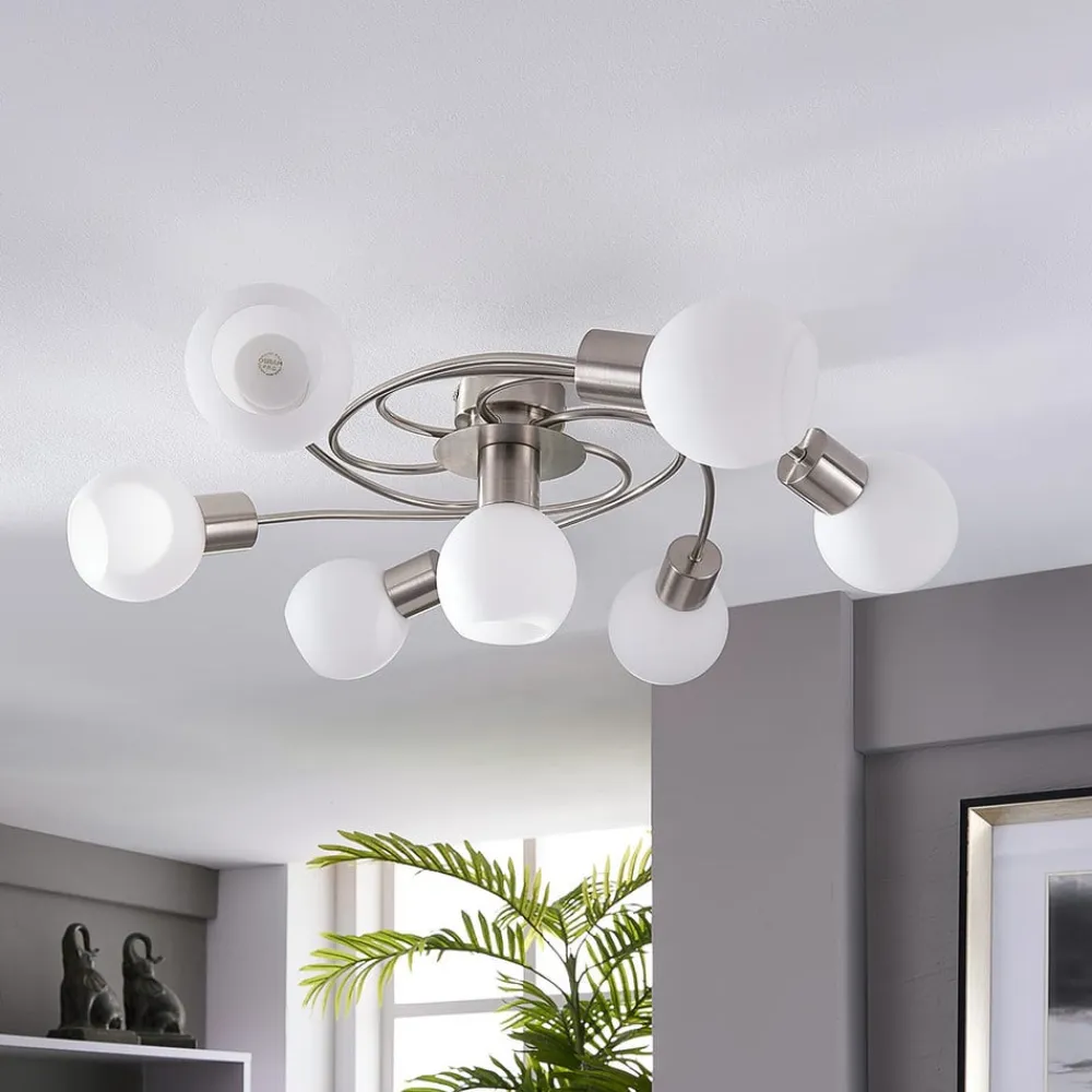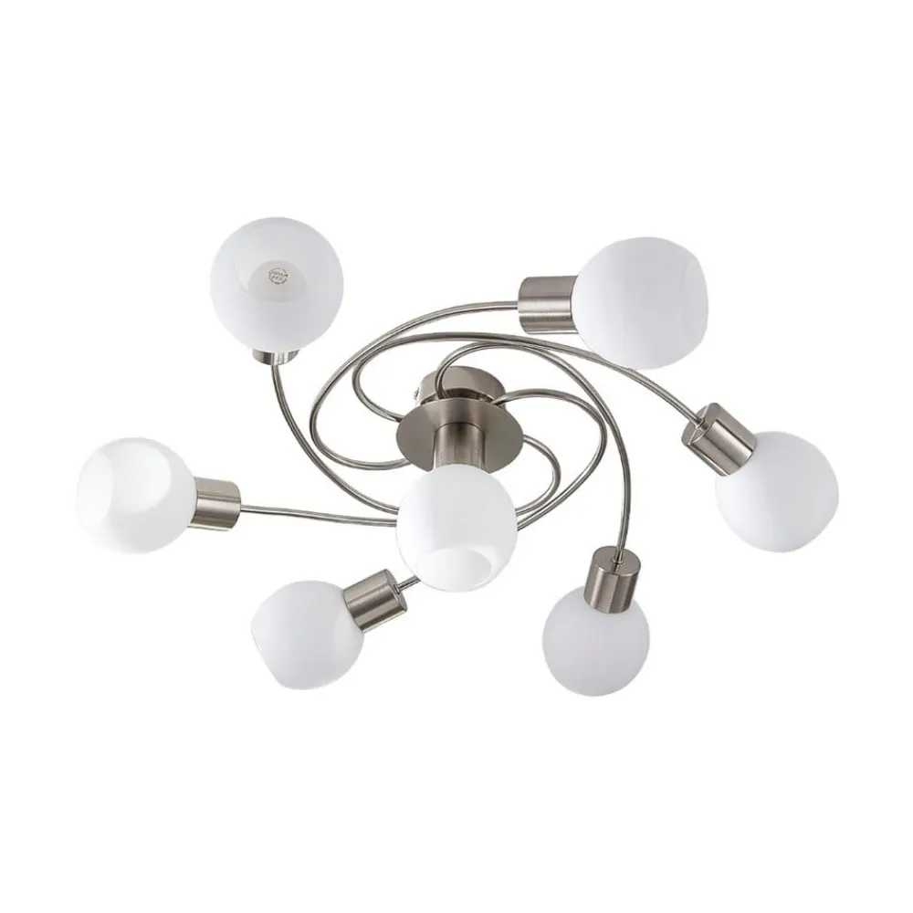 Lindby loftlampe Ciala, 7 lyskilder, nikkelfarvet, glas