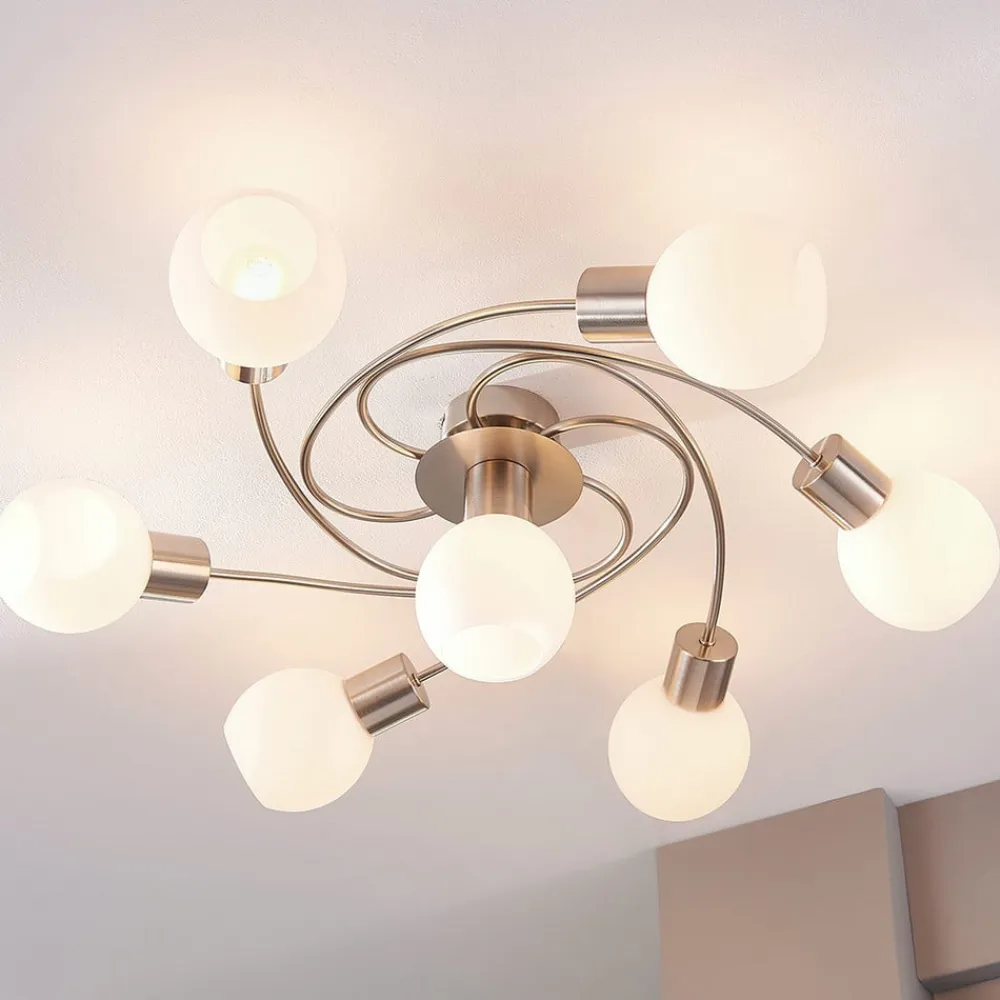 Lindby Gang|Loftlamper>loftlampe Ciala, 7 lyskilder, nikkelfarvet, glas