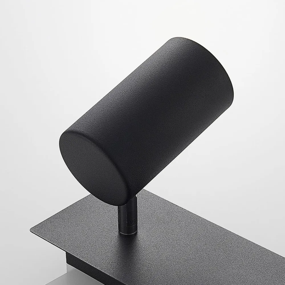 Fleksibelt Joffrey loftspot i sort Joffrey loftspot understreger tydeligt minimalisme og klare linjer. Armaturet har en matsort metalramme og to cylindriske lampehoveder, som begge kan justeres i position. Det betyder, at Joffrey ikke kun passer ind i en lang række rumkoncepter, men også kan bruges fleksibelt takket være muligheden for vægmontering.