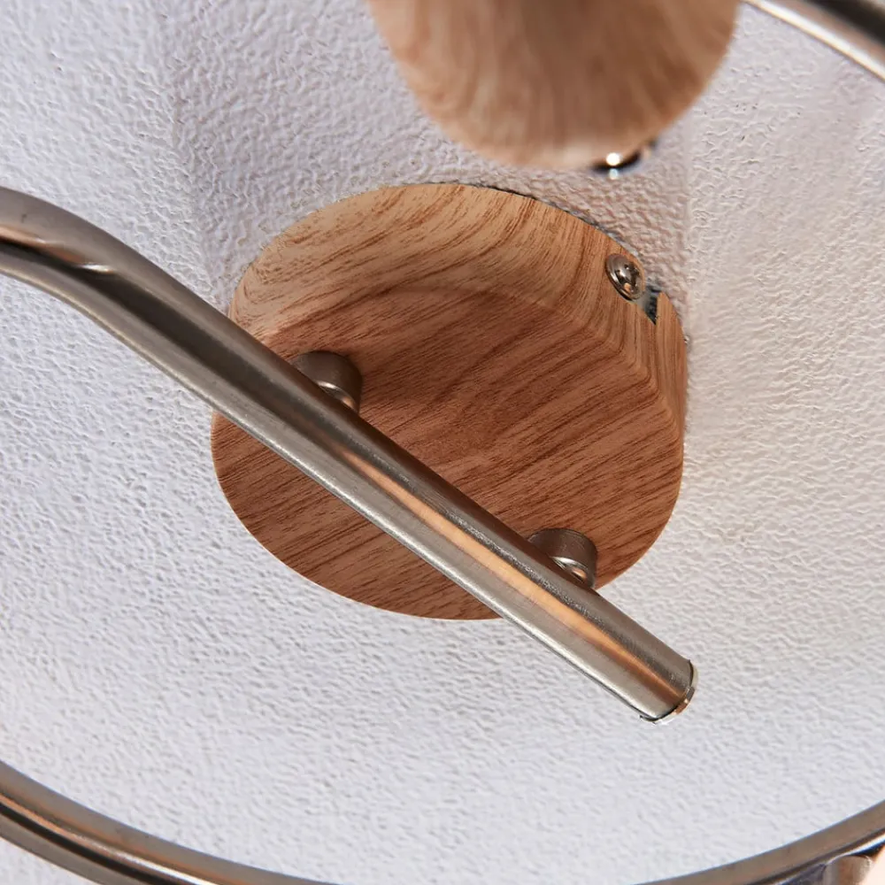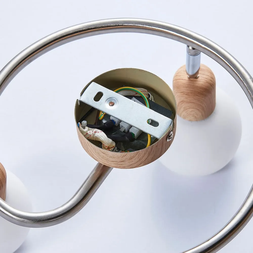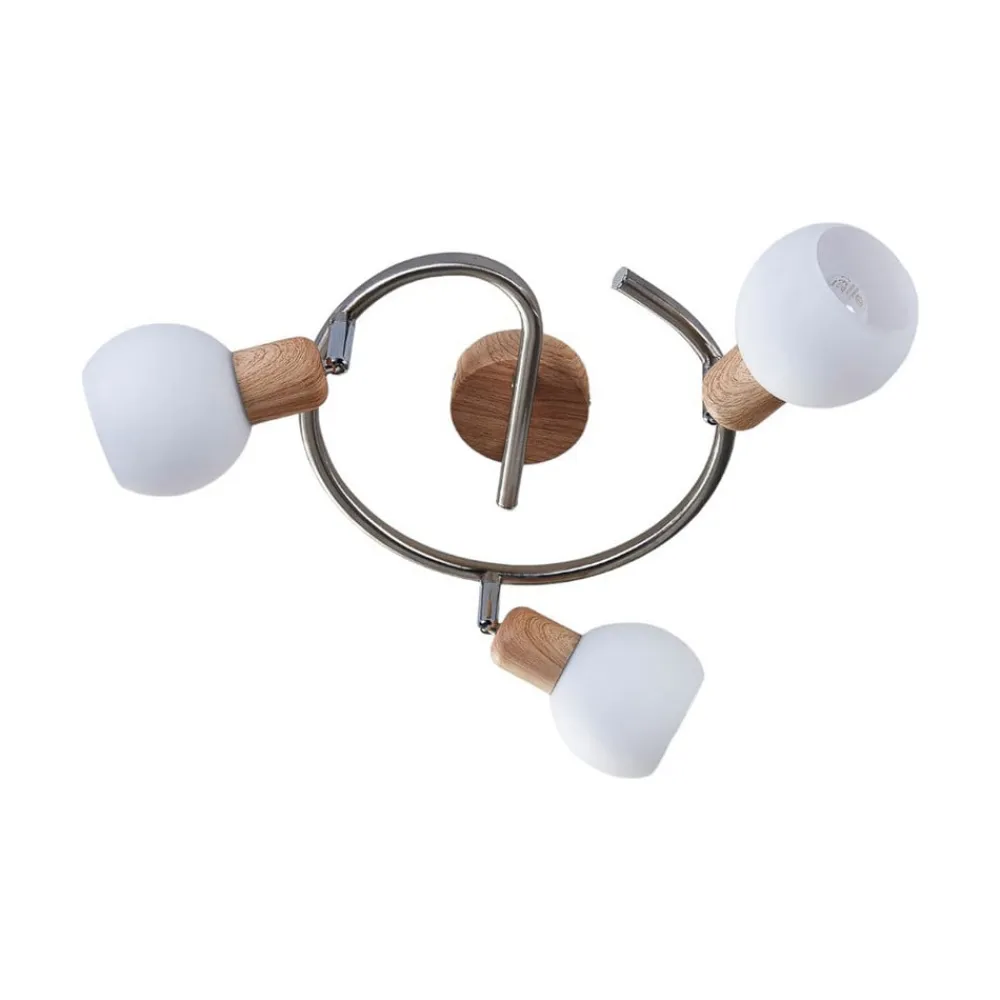 Denne loftslampe nyder godt af, at du kan justere hvert enkelt lygtehoved individuelt, da du derved bedre kan tilpasse lysets glans til forholdene på stedet. Komponenterne i træoptik står for en hyggelig optisk effekt, og også de hvide skærme med alabastertone understreger dette indtryk, for når du tænder lamperne, virker lyset meget jævnt og har en hjemlig karakter