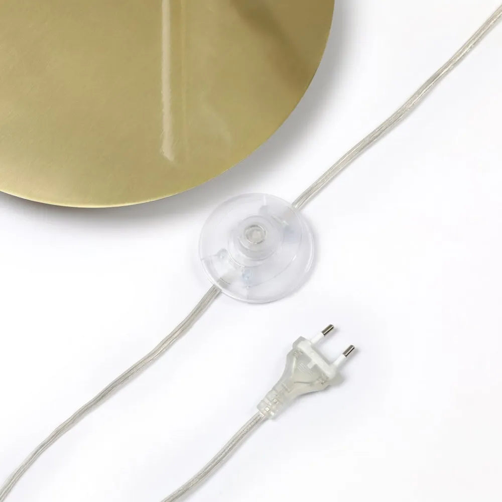 Gulvlampen Cynthia har en flot buet form, så den passer godt ind i en stue ved siden af en sofa og især kommer til sin ret som accentbelysning om aftenen. Stativet i metal har en messingfarvet finish, der giver et lidt klassisk look og derfor kan kombineres godt med tilsvarende stilarter. Lampeskærmen er lavet af hvidt glas og giver et blødt, behageligt lys med en hyggelig udstråling. Du kan nemt påvirke lyset og den hyggelige effekt ved at vælge en passende pære. Der er en fodkontakt i ledningen.
