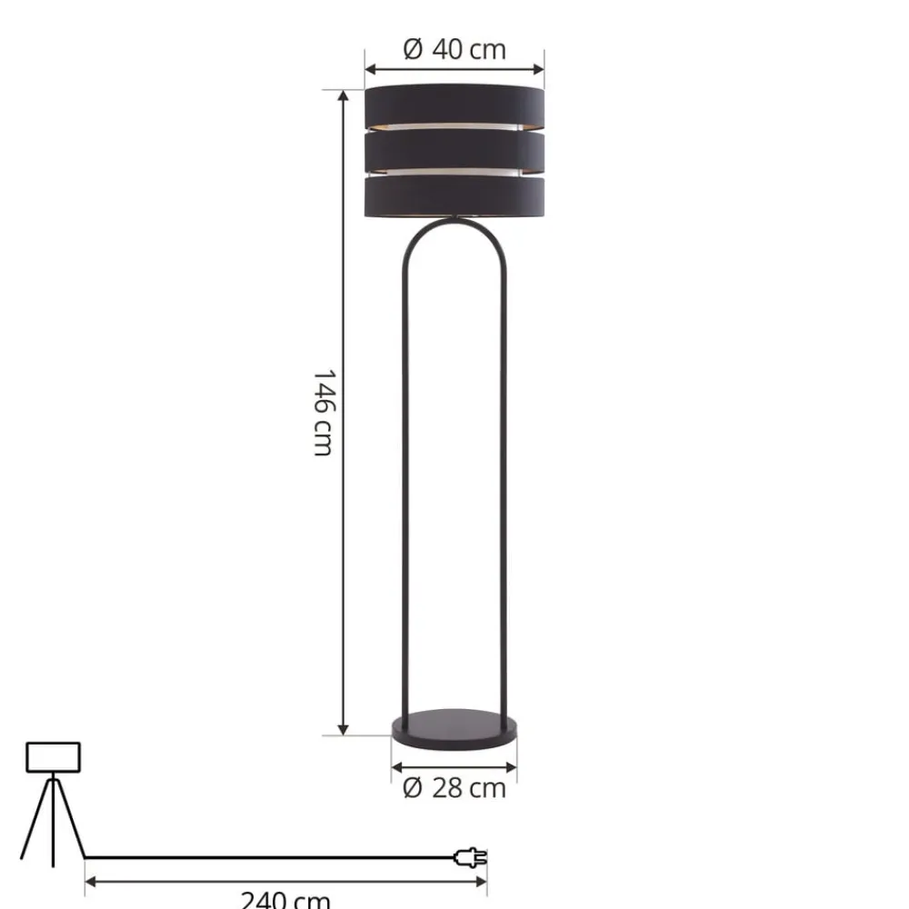 Lindby Gang|Pendellamper>gulvlampe Tsomo, Ø 40 cm, sort, stof, E27