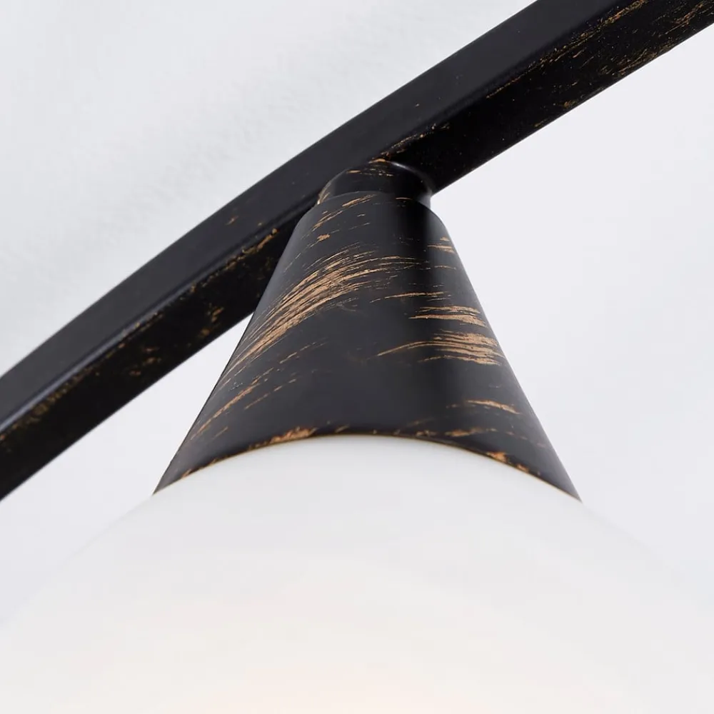 Della – loftlampe i en 5 lyskilder version Det særlige ved denne loftlampe er dens finish, da den ikke bare er sort, men også har fine gyldne penselstrøg. Det giver udseendet et lidt rustikt præg, som nemt kan kombineres med forskellige landhusstile. Takket være den aflange form er der garanti for god rumbelysning, og loftlampen, som drives med E14-lamper, er ikke kun velegnet til stuen, men også til en gang, et soveværelse eller en spiseplads.
