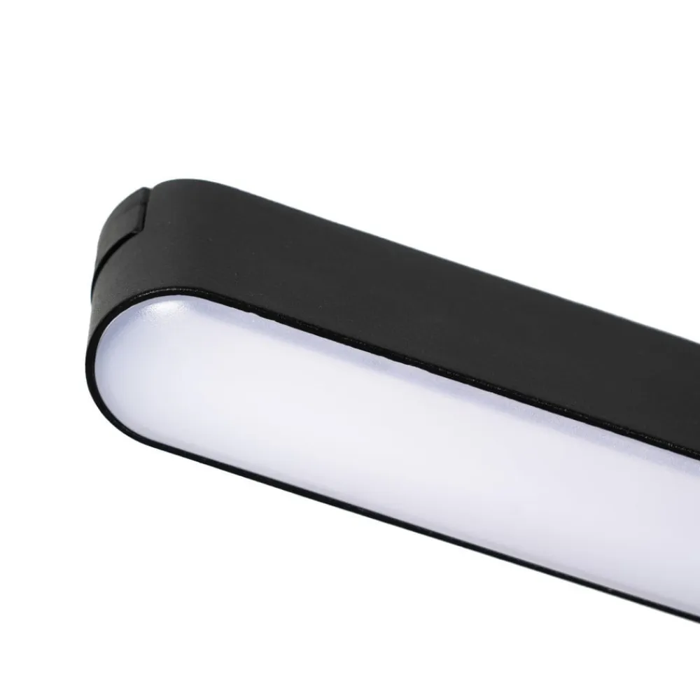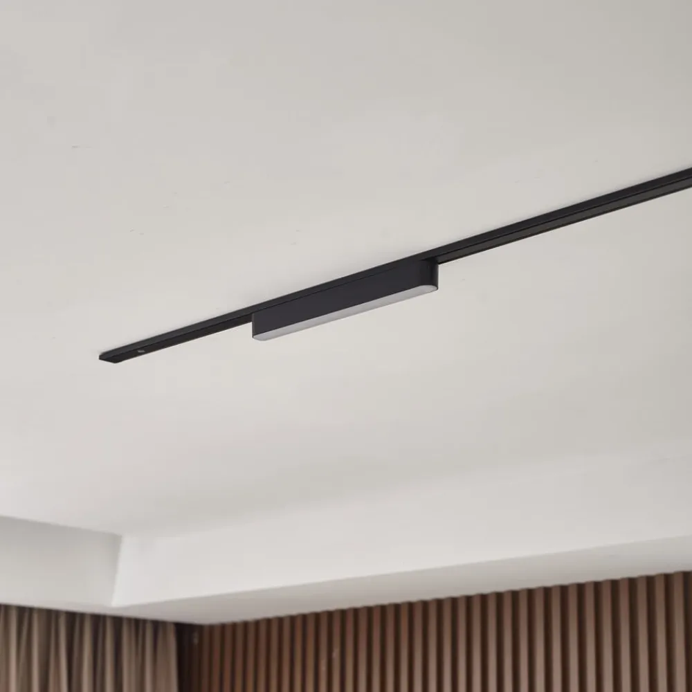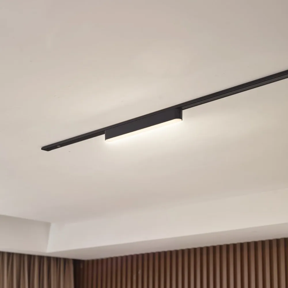 Moderne LED-armatur til Lumaro skinnesystem – med styrbar lysfarve (CCT) og dæmpningsfunktion Lumaro LED-armaturet er en berigelse for ethvert interiør. Med sin CCT og dæmpbare funktion giver det mulighed for individuel justering af lysfarven for at skabe den ønskede atmosfære – fra varme toner til en hyggelig aftenstemning til køligere nuancer, der fremmer koncentration og produktivitet. Begge funktioner styres med en fjernbetjening, som ikke er inkluderet i leveringsomfanget, men som kan købes separat via tilbehøret. Det moderne design i elegant sort passer perfekt ind i moderne indretningskoncepter. Lumaro LED-skinnesystemet kan integreres i skinnesystemet af samme navn og giver mulighed for en ukompliceret og enkel installation. Det giver også utallige designmuligheder med ekstra skinne- og belysningselementer, der giver maksimal fleksibilitet og kan tilføjes på et senere tidspunkt – skal kombineres med 48V Lumaro LED-driveren for at fungere Bemærk, at Lumaro skinnesystemet kun er kompatibelt med tilbehør fra Lumaro-sortimentet. For at undgå forveksling med andre systemer må du kun kombinere tilbehør og skinnesystemer fra serien med samme navn.