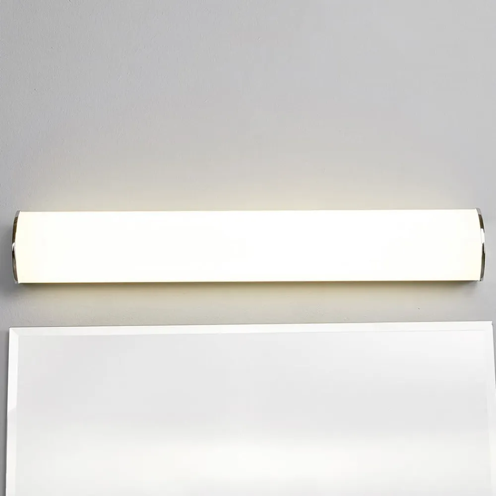 Denne væglampe til badeværelsets form er utrolig simpel og passer derfor til mange stilarter. Den placeres ideelt over et spejl, hvor den sikrer et ensartet lys med varm hvid farvetemperatur. Integrerede LED´er af mærket Sanan er imidlertid meget økonomisk med hensyn til energiforbrug, men genererer en kraftigt lys, og sørger for lys i badeværelset.