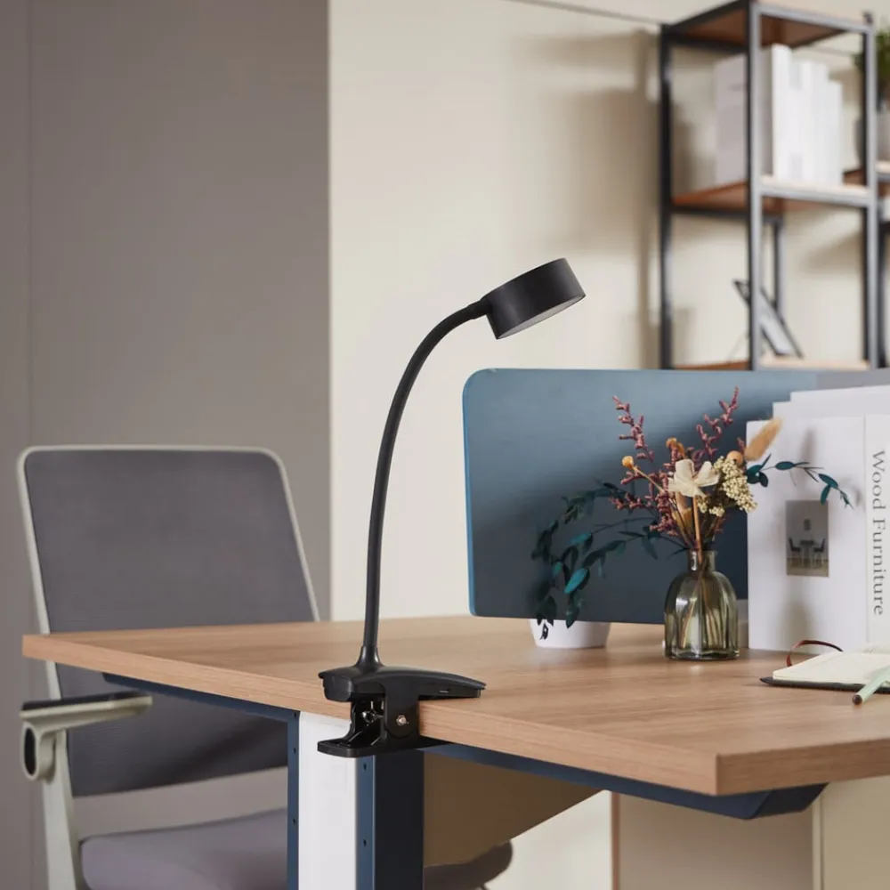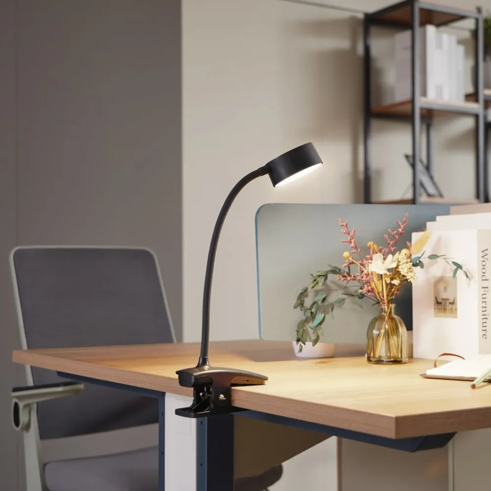 Dæmpbar Maori klemmelampe med genopladeligt batteri og fleksibel arm Maori klemmelampen er et praktisk belysningselement med et slankt, underspillet design. Takket være klemmen kan den monteres mange steder, og den praktiske batteridrift gør den helt fleksibel og uafhængig af en strømkilde. Den fleksible arm gør det muligt at justere den efter behov, og både lysstyrken og lysfarven kan justeres ved hjælp af trykknapperne. Det genopladelige batteri kan nemt oplades ved hjælp af det medfølgende USB-kabel (ekskl. netadapter) – lysvarighed 5 timer – opladningstid 6 timer – dæmpbar (15 %, 40 %, 100 %) – indstillelig hvid, trinløs, 3.000 K – 6.500 K